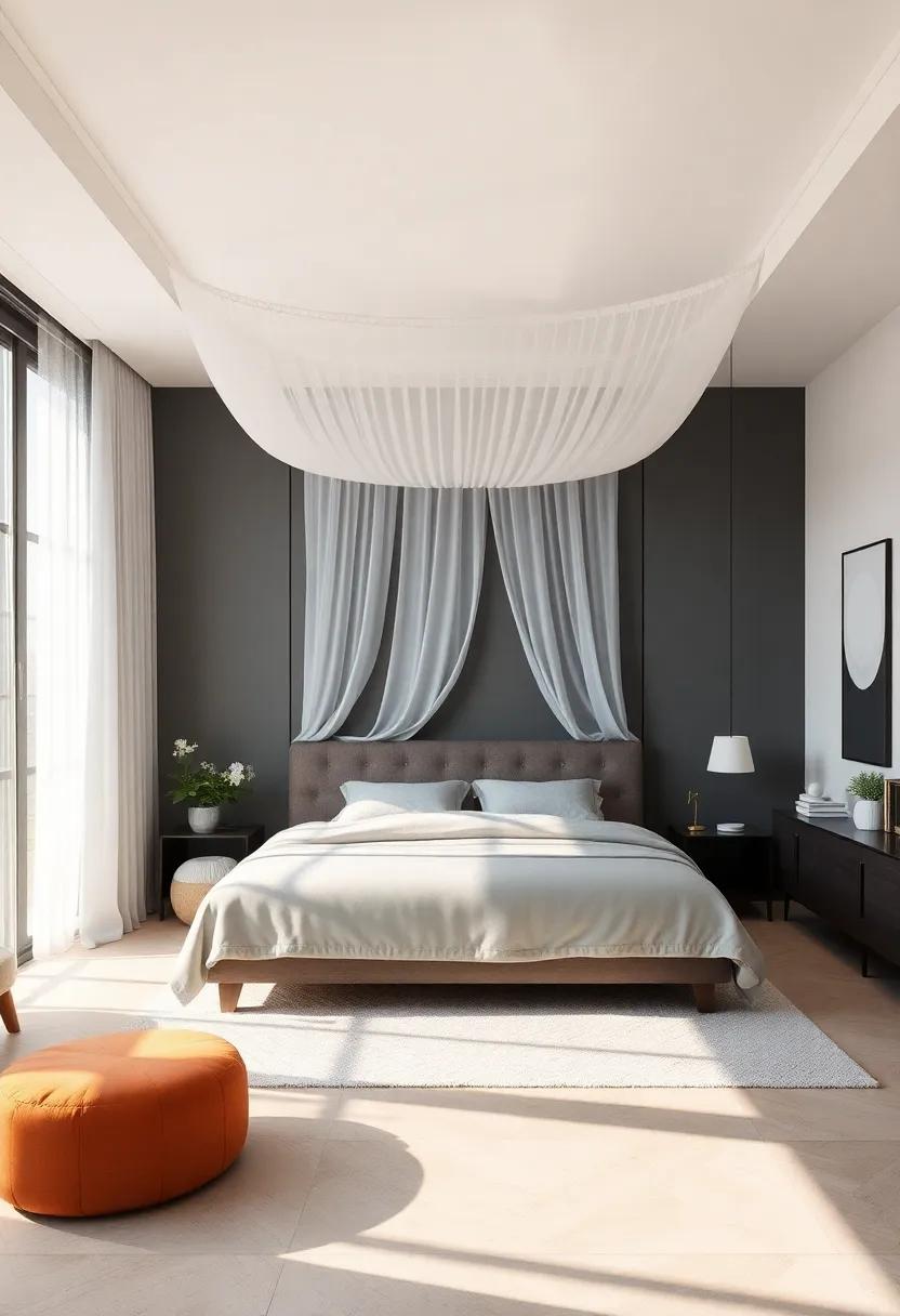 Transform your bedroom into a dreamy retreat by adding a canopy that not only enhances the aesthetic appeal but also provides a sense of intimacy and coziness. Whether you opt for a bold, modern frame or a delicate, airy fabric drapery, the canopy creates a stunning focal point that can define the mood of the entire space. Consider these ideas to amplify your sleeping quarters: