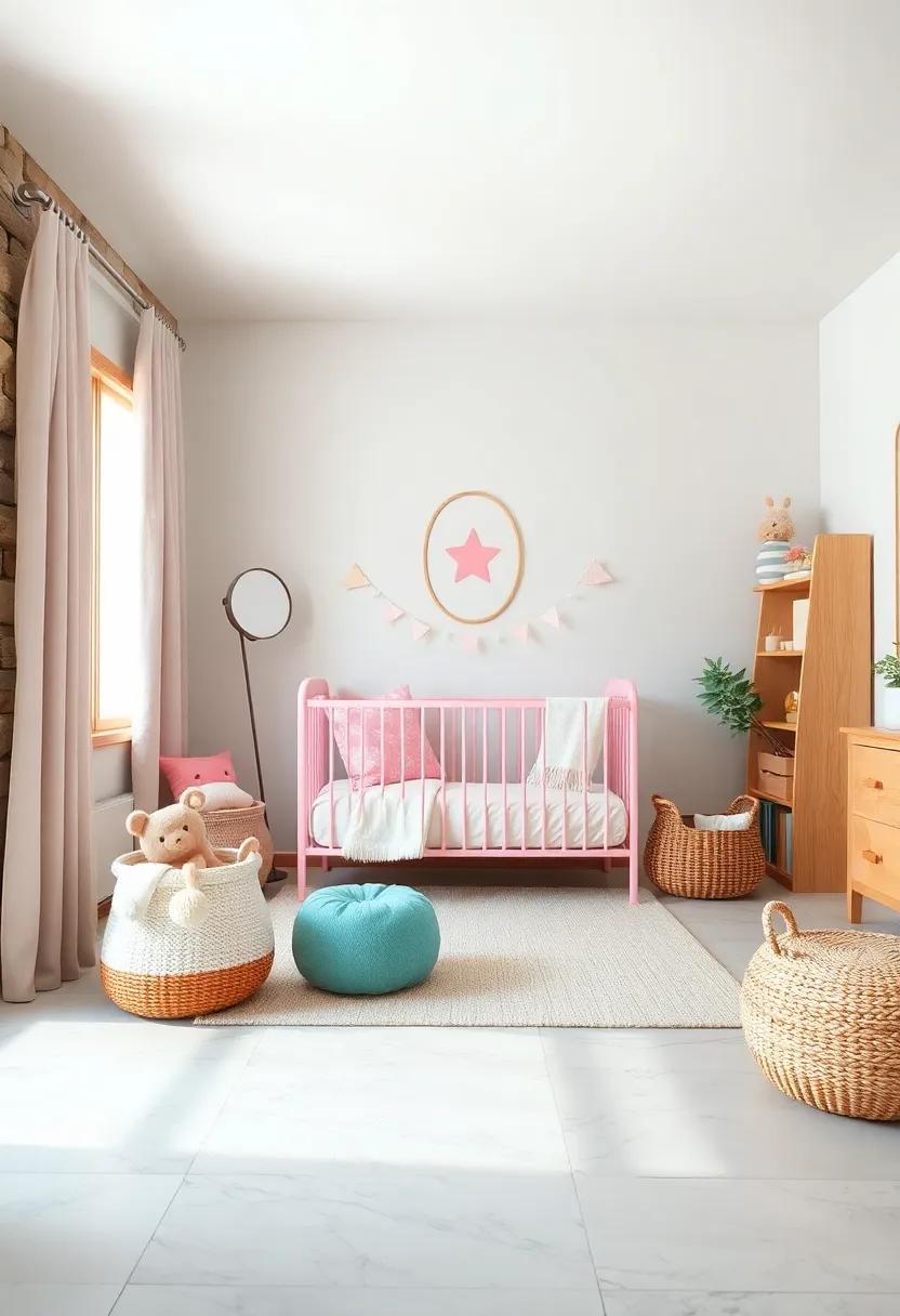 Baskets and Bins: Incorporate stylish storage bins to keep toys organized and easily accessible without cluttering the space