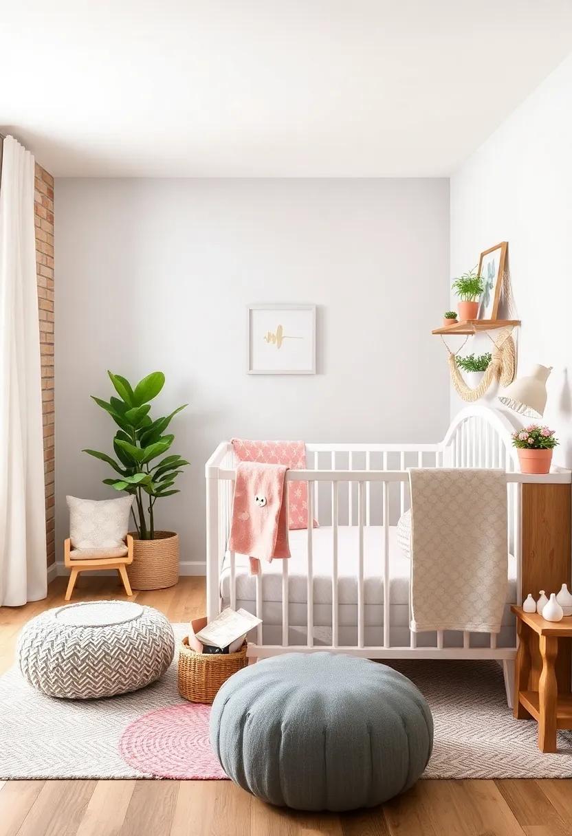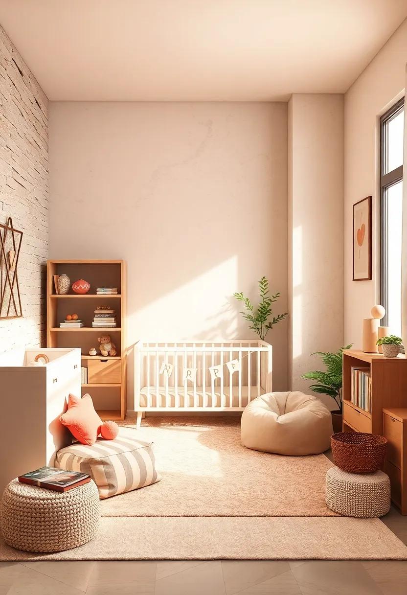 maximizing space goes hand-in-hand with minimalism. Opt for floating shelves to keep essentials accessible but off the floor, and install multi-functional furniture, like a changing table that includes built-in drawers, to keep all baby items neatly tucked away. To further declutter, you might benefit from using baskets or bins to store toys and blankets, integrating them into your décor. Maintaining open areas on the floor helps encourage movement and play, reinforcing a calm environment. In this serene space, every item should be purposeful, making room for growth while reflecting your style and values.