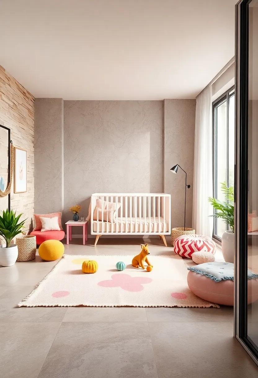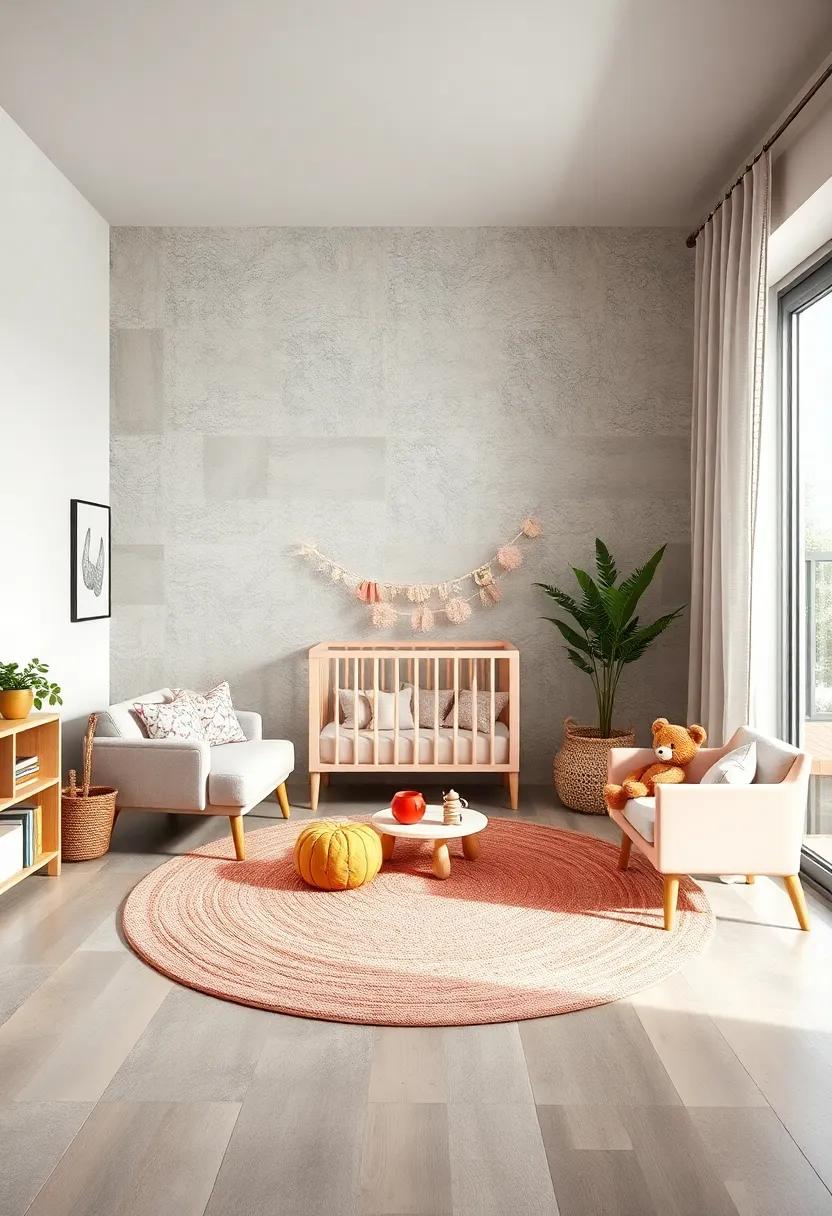 Rug Placement: Use a round rug to define play areas and add warmth without restricting movement through the space