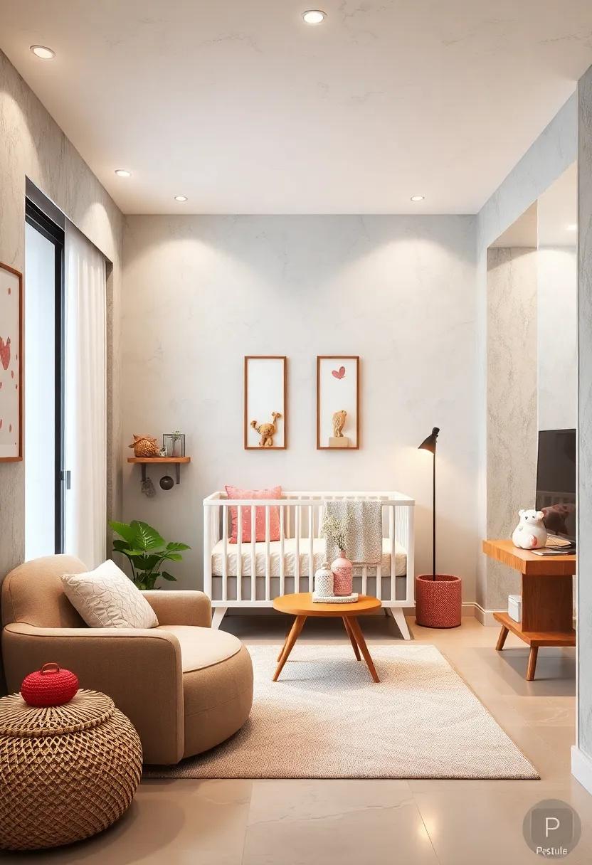 When designing a nursery, it’s essential to embrace a layout that can evolve with your child. Consider modular furniture that adapts to various stages of growing up, such as a crib that converts into a toddler bed or storage units with adjustable shelves. This adaptability not only maximizes space but also reduces the need for frequent renovations, allowing you to focus on creating a nurturing environment. Incorporating items like foldable changing tables or stackable toy bins can help maintain functionality without compromising style as your child’s interests and needs shift.
