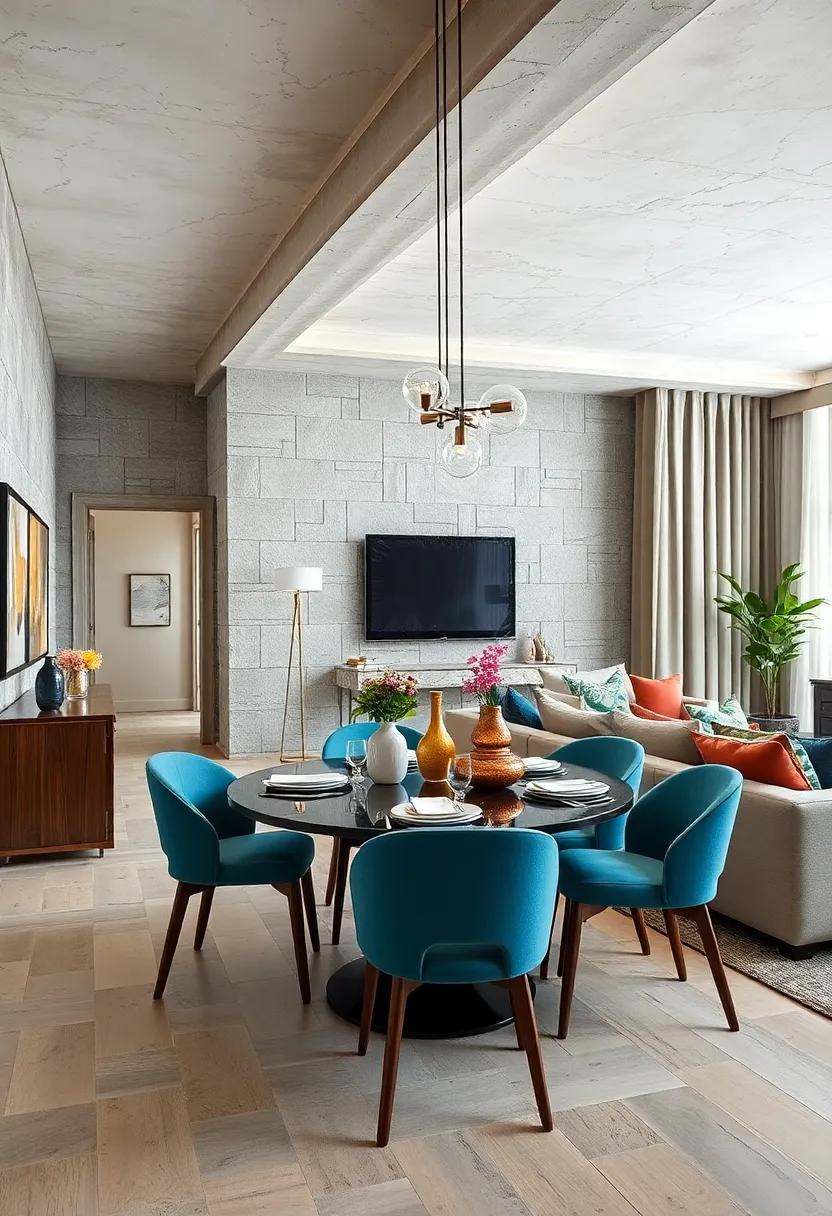Transform your space by strategically introducing unexpected color pops through chairs and decor that reflect the unique character of both your dining and living areas. Consider opting for a pair of bold turquoise chairs at the dining table, which not only anchor the area visually but also create a delightful contrast against softer tones in your living room. To ensure cohesion, incorporate accessories like cushions or artwork featuring similar vibrant hues, allowing colors to seamlessly ebb and flow between the two spaces. It’s all about finding a balance that celebrates individuality without overwhelming the senses.