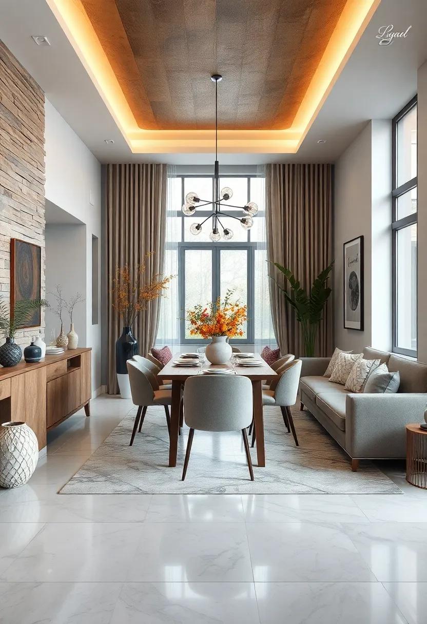 Embrace Open Spaces: Use an open floor plan to seamlessly blend your living and dining areas, allowing for effortless flow and interaction