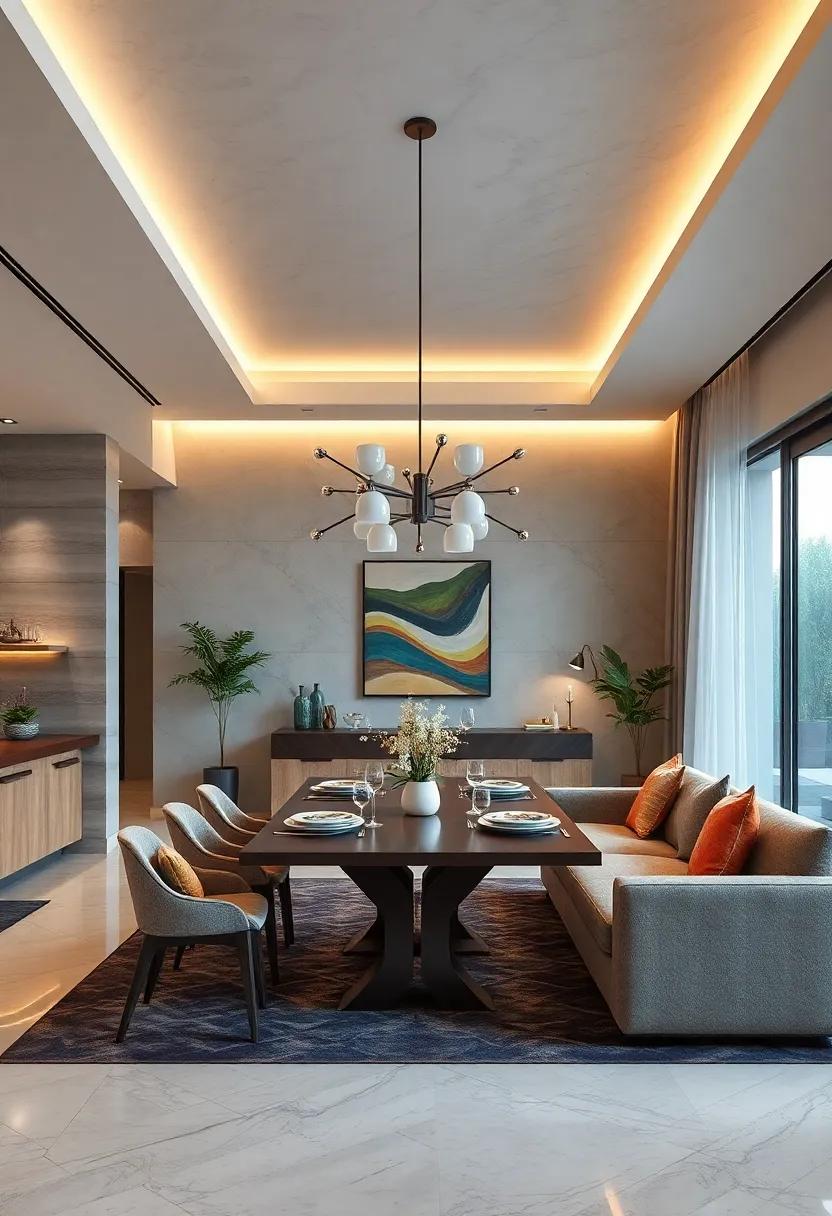 Smart Technology: Integrate technology that adapts to both environments, like smart lighting that can set the mood for dining or lounging