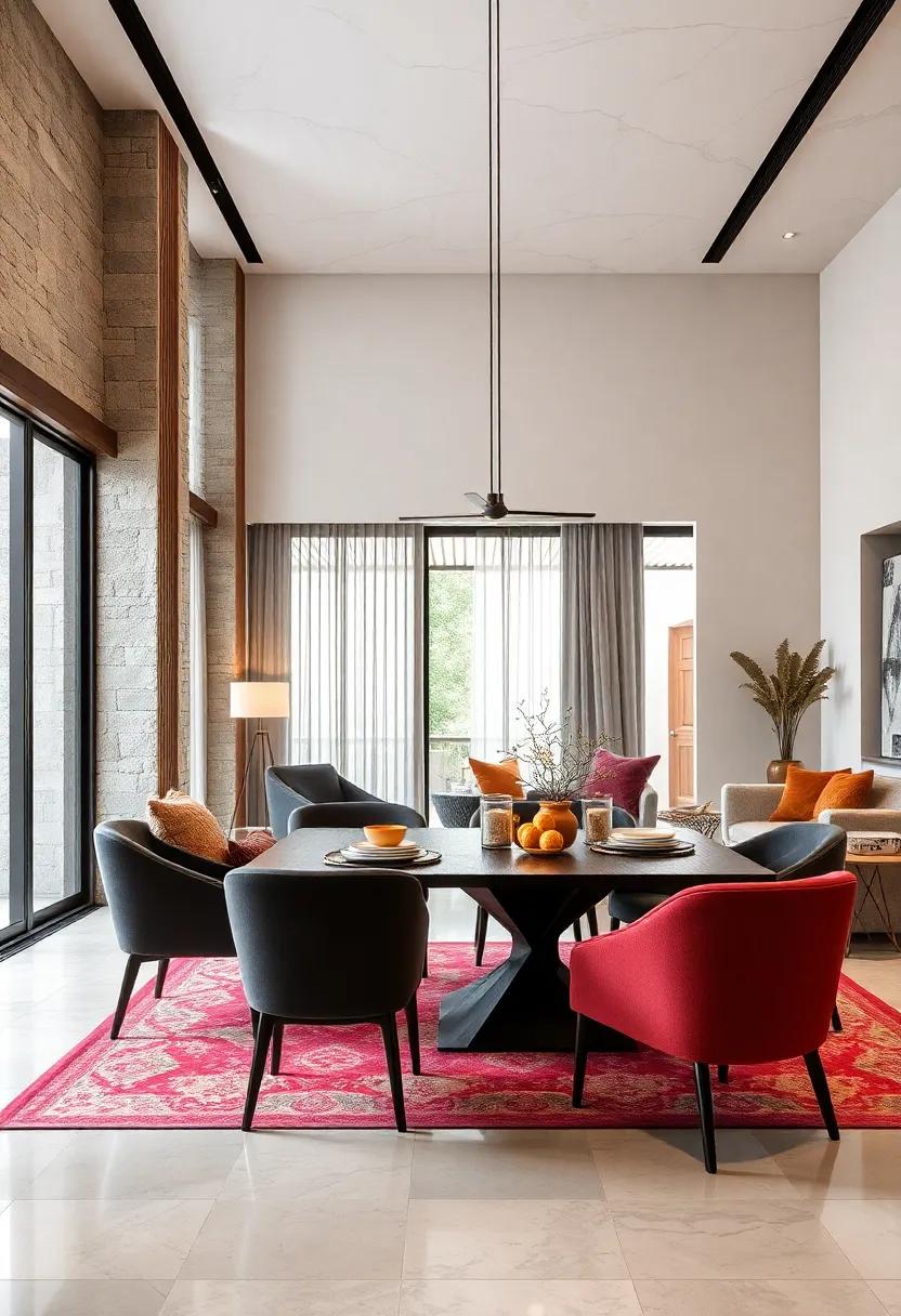 Unique Dining Chairs: Make a statement with bold dining chairs that add character, contrasting with the more relaxed seating in the living area