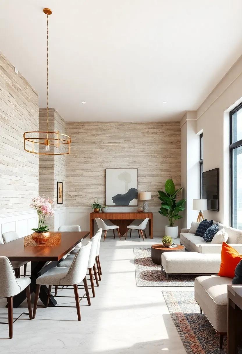 Transforming your dining room and living room combo into a stylish retreat can be achieved with the clever use of an accent wall or bold wallpaper. Consider using a vibrant shade or an eye-catching pattern that complements your existing furniture and décor. This conversion not only creates visual interest but also delineates spaces, making each area feel distinct yet harmonious. Geometric patterns, floral designs, or even a dramatic mural can set the tone for the entire room, drawing in natural light and guiding the eye across the space. By selecting wallpaper or paint that resonates with your aesthetic, you create a captivating backdrop that invites conversation and enhances the atmosphere.