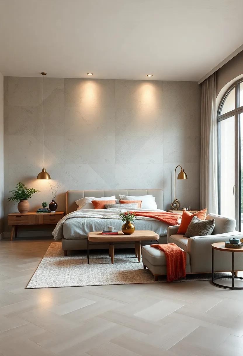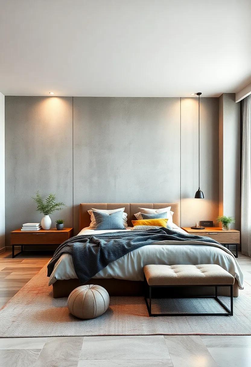 to enhance the appeal of your space, introduce strategic lighting solutions that cast a warm glow against the concrete surface. Utilize pendant lights with an industrial flair or opting for wall sconces that create shadows and depth. A carefully chosen area rug can anchor the room, adding warmth underfoot while complementing the rugged wall finish. With the right mix of textures and tones, a brushed concrete wall can transform your master bedroom into a sophisticated retreat that feels both contemporary and timeless.
