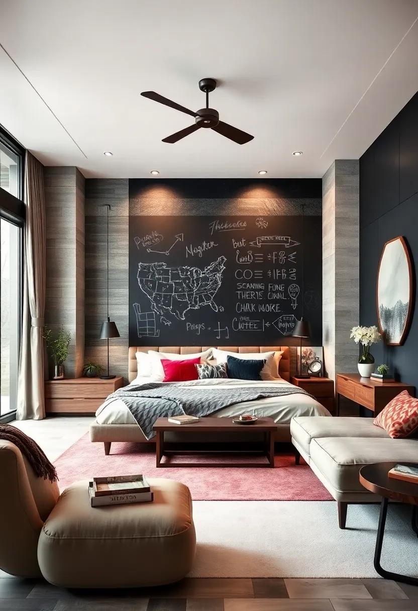 Imagine waking up to a wall that invites you to dream, scribble, and express your thoughts spontaneously. A chalkboard wall serves as the perfect canvas for your inner artist and a practical tool for organizing your life. You can transform a dull bedroom into a lively space by designating a section of your wall for chalkboard paint. Keep it sophisticated with a sleek frame or let it blend seamlessly with the other textured finishes in your room. From daily affirmations to to-do lists, the functionalities are endless, and the ability to easily change your ideas adds an innovative twist to your morning routine.