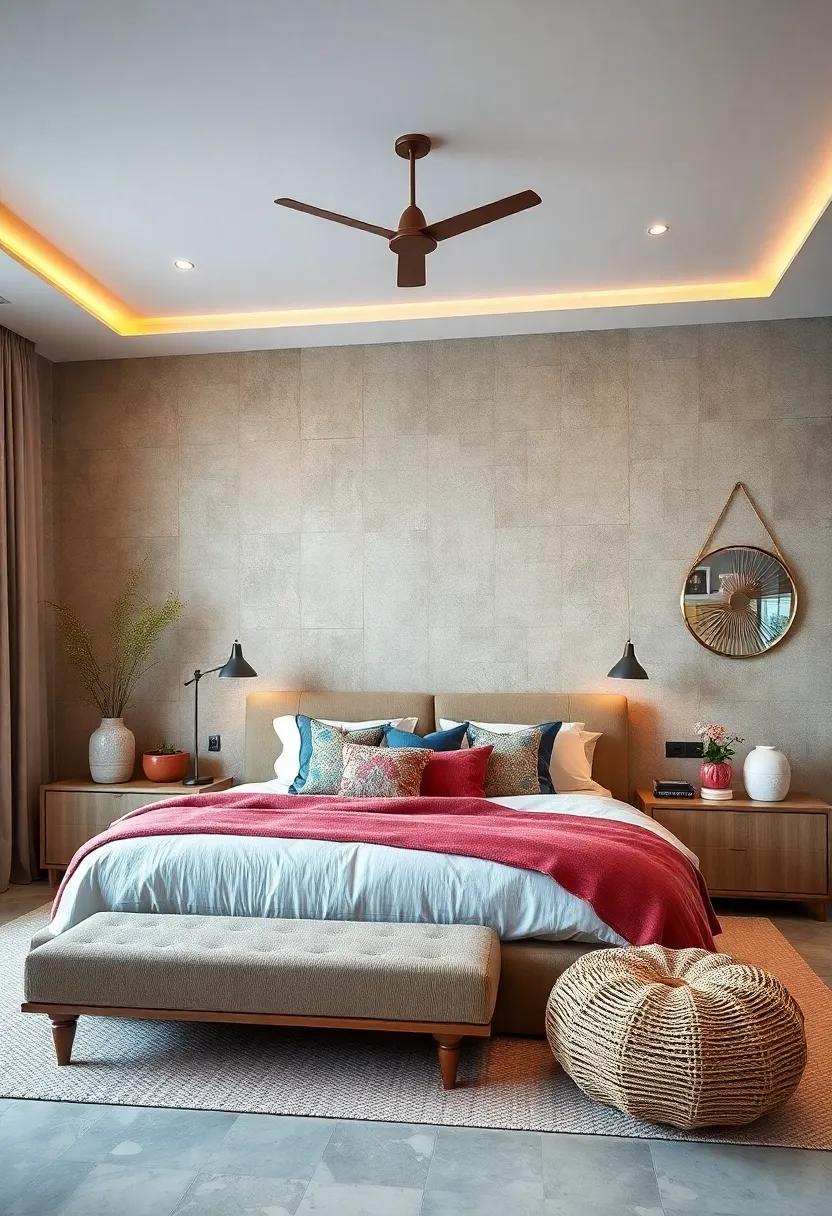 Infuse your master bedroom with a sense of warmth by incorporating a cozy woven wall finish, a hallmark of the boho-chic aesthetic.This design choice not only enhances the visual appeal of your space but also celebrates artistry and the individuality of handcrafted pieces. Consider embracing natural fibers such as jute or rattan, which evoke a tranquil atmosphere. Rich textures create a stunning backdrop that pairs beautifully with a color palette of earthy tones and rich shades, making the room feel both inviting and lively.