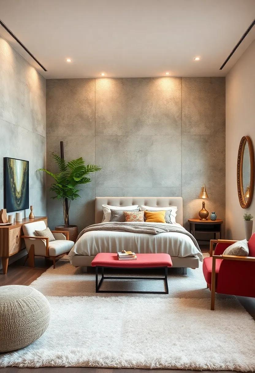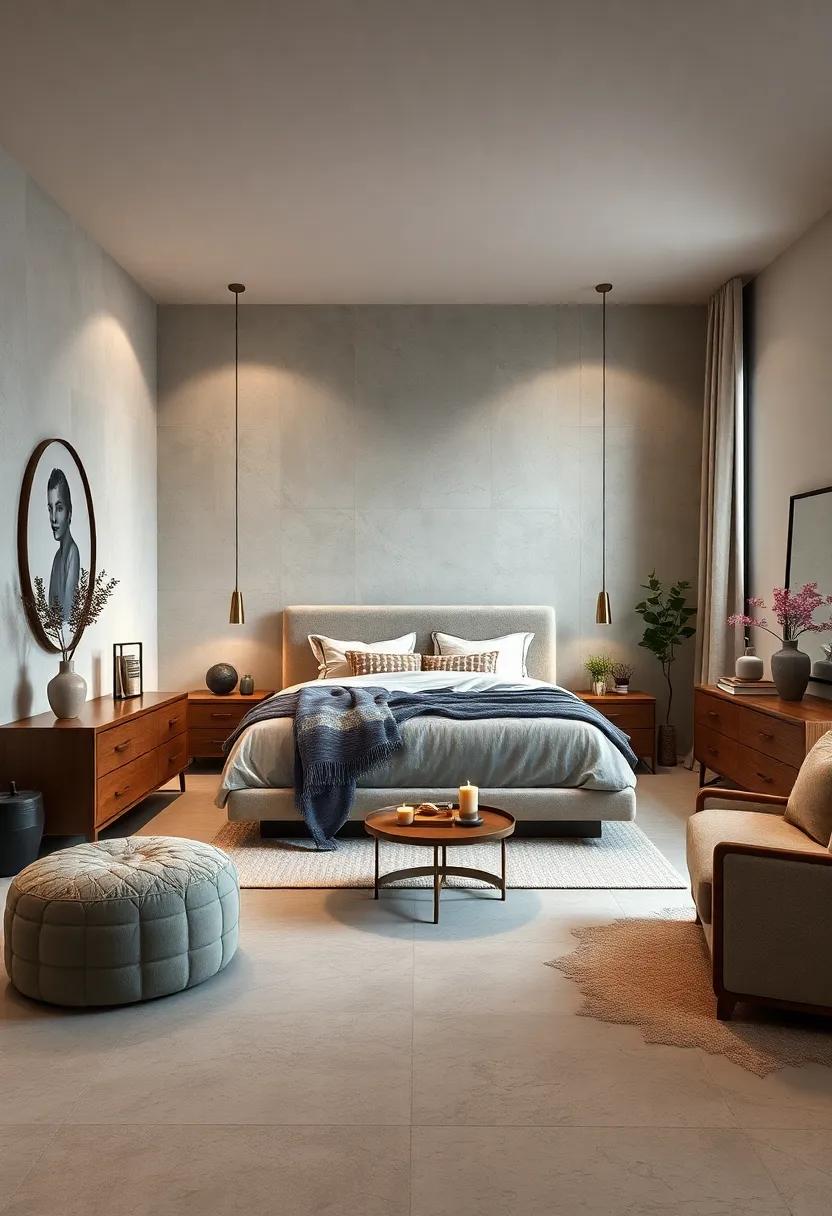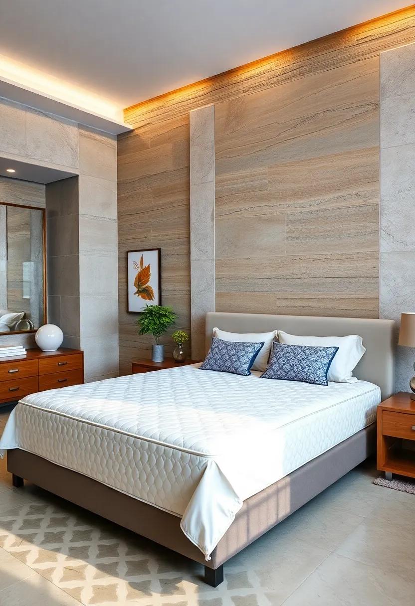 The layout of the room plays a vital role in achieving a sleek ambiance. Arrange your furniture to promote flow; place your bed against a wall with ample space around it, allowing for easy movement. Consider incorporating hidden storage solutions, such as under-bed drawers or a discreet nightstand with compartments, to keep surfaces clear of clutter. Using natural materials like wood or stone will add warmth and texture, further enhancing the calming vibe.You can also utilize large mirrors to create the illusion of space and light, amplifying the serenity of a minimalist design. the goal is to cultivate an inviting and peaceful environment that feels luxurious yet uncomplicated.