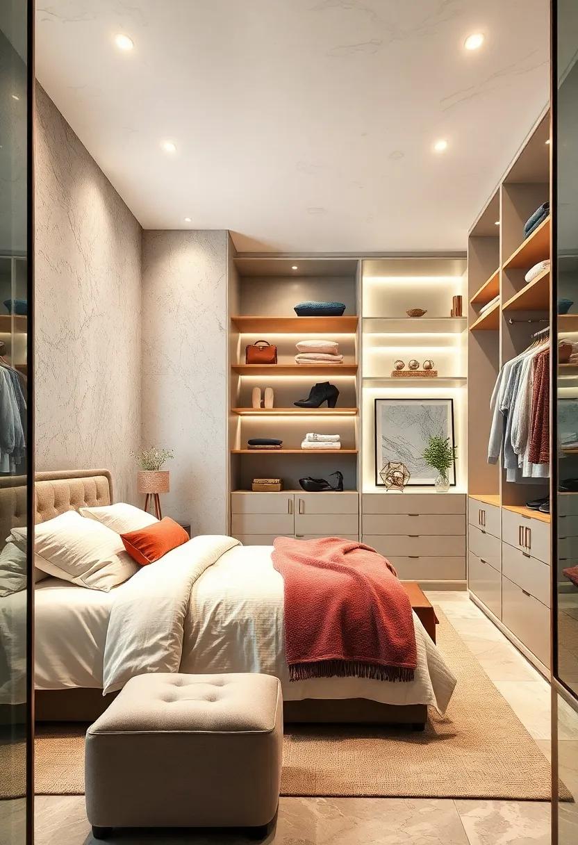 Don’t forget to add plush carpeting or a tasteful area rug to bring a touch of warmth underfoot, grounding the space in comfort and style. Incorporate mirrored surfaces,like glass-fronted cabinets or a statement full-length mirror,to enhance the sense of openness and light. You might also consider integrating a display area with small shelves or hooks to showcase standout pieces like handbags or hats, adding a touch of visual flair. By thoughtfully designing your walk-in closet,you create a refined retreat that elevates your daily routine and showcases your stylish taste.