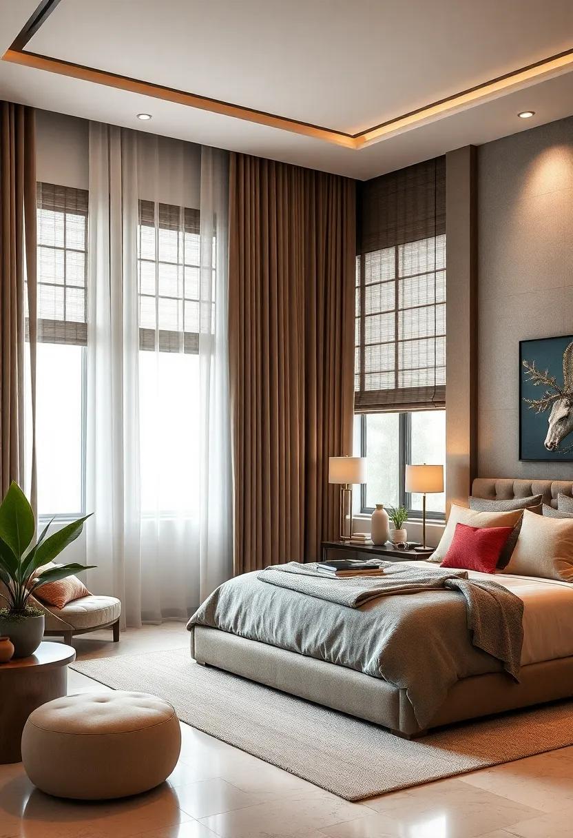 Transform your windows into a stunning focal point with a variety of luxurious treatments. Drapes crafted from sumptuous fabrics such as silk, velvet, or linen can elevate the overall ambiance of your bedroom, creating a cozy retreat. By selecting colors and patterns that complement your existing decor, you can enhance not only privacy but also the aesthetic appeal of the space. Consider layering sheer curtains beneath heavier drapes to add depth and allow natural light to softly filter through,balancing light and shadow.