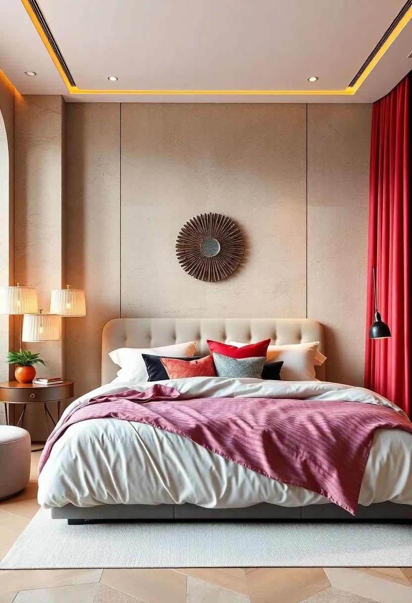 to enhance your bedroom’s aesthetic, don’t shy away from playing with colors and patterns. A rich, jewel-toned velvet brings warmth, while soft pastel silks can add a touch of whimsy and lightness. Try combining the following elements for a striking visual effect: