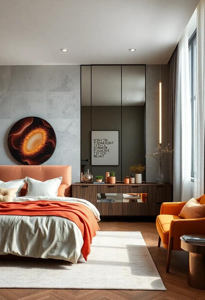 Incorporating mirrors into your bedroom design can dramatically transform the perception of space and light. Choose oversized mirrors to create a focal point, or opt for multiple smaller ones arranged artistically.By positioning them opposite windows, you’ll significantly amplify natural light, enhancing the room’s ambiance. This visual trick not only creates the illusion of a larger area but also brings an inviting warmth to your sleeping oasis.