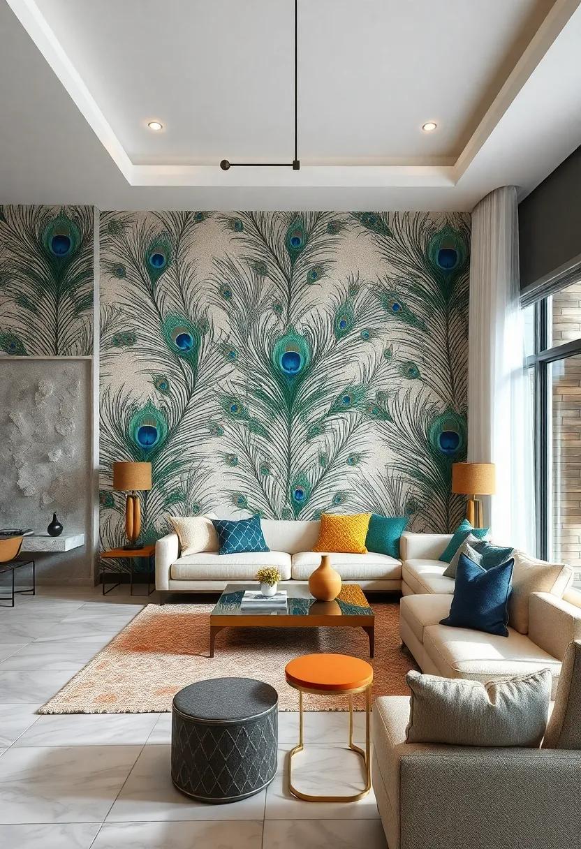 Elevate your living room with the captivating allure of exotic bird feathers or peacock patterns. Their bold designs not only bring a sense of elegance but also introduce an unexpected flair that can transform a mundane wall into a breathtaking focal point. The rich colors and intricate details mimic the beauty of nature, allowing you to create a space that feels both luxurious and inviting. Imagine a feature wall adorned with peacock feathers in shades of emerald, sapphire, and gold, shimmering under the right light-inviting admiration from every guest.