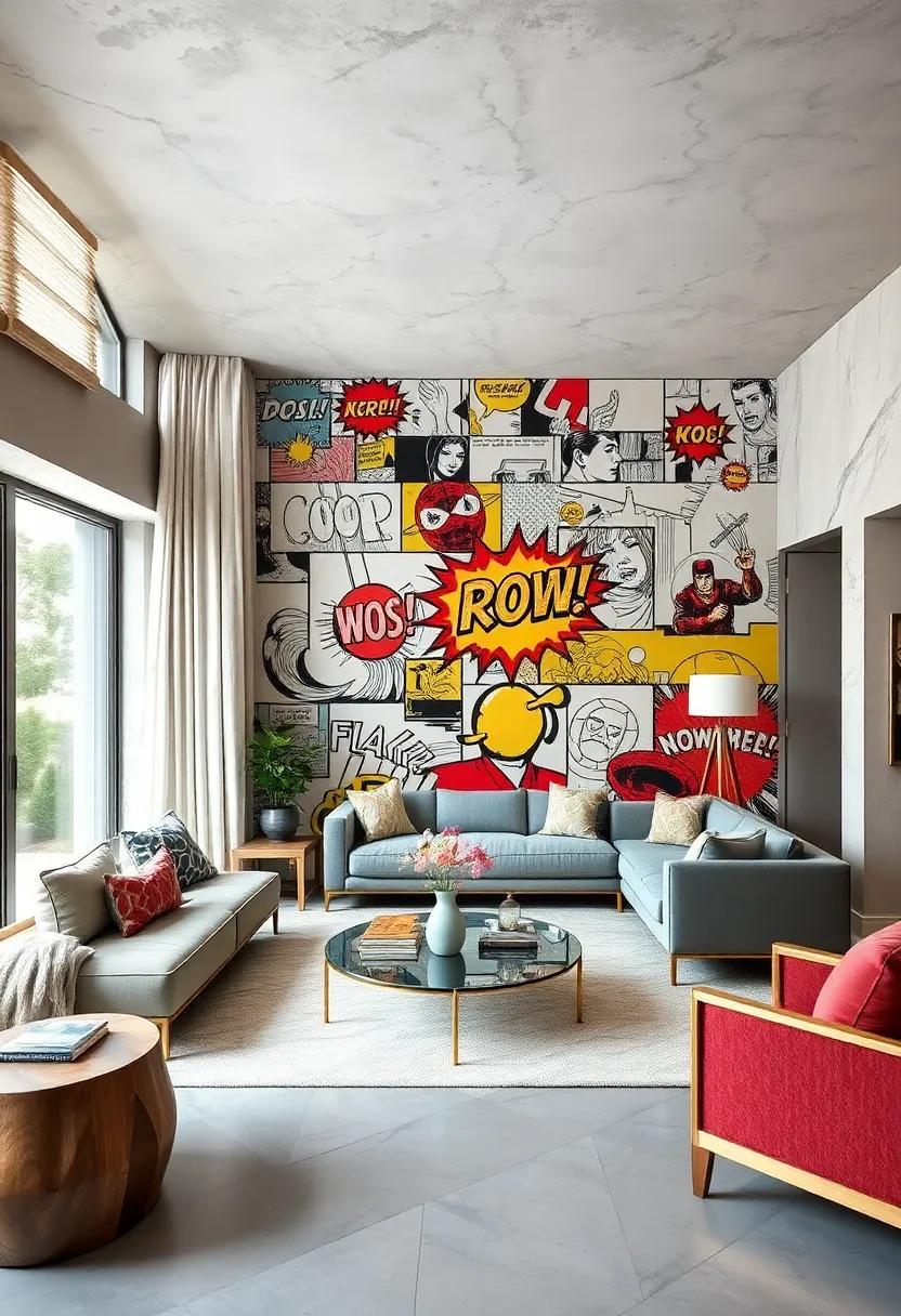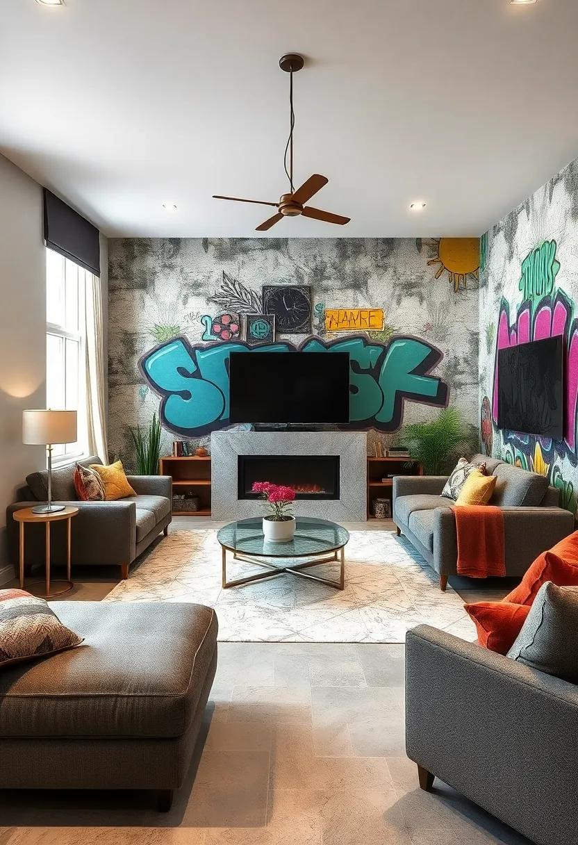 Here’s a look at how to incorporate graffiti wallpaper into different areas of your living room: