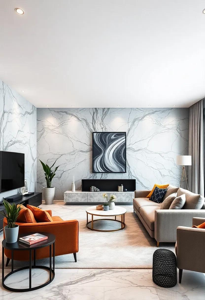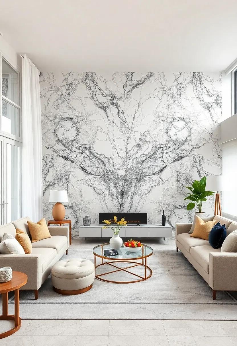 Elevate your living room with the sumptuous look of faux marble wallpaper that captures the essence of refined luxury without the hefty price tag. This design choice not only enhances visual aesthetics but also adds a sense of sophistication that makes any space feel more inviting. With various options available, from soft veining to bold, dramatic patterns, you can effortlessly select the perfect faux marble design that resonates with your personal style. Here are some stunning characteristics that make this choice irresistible: