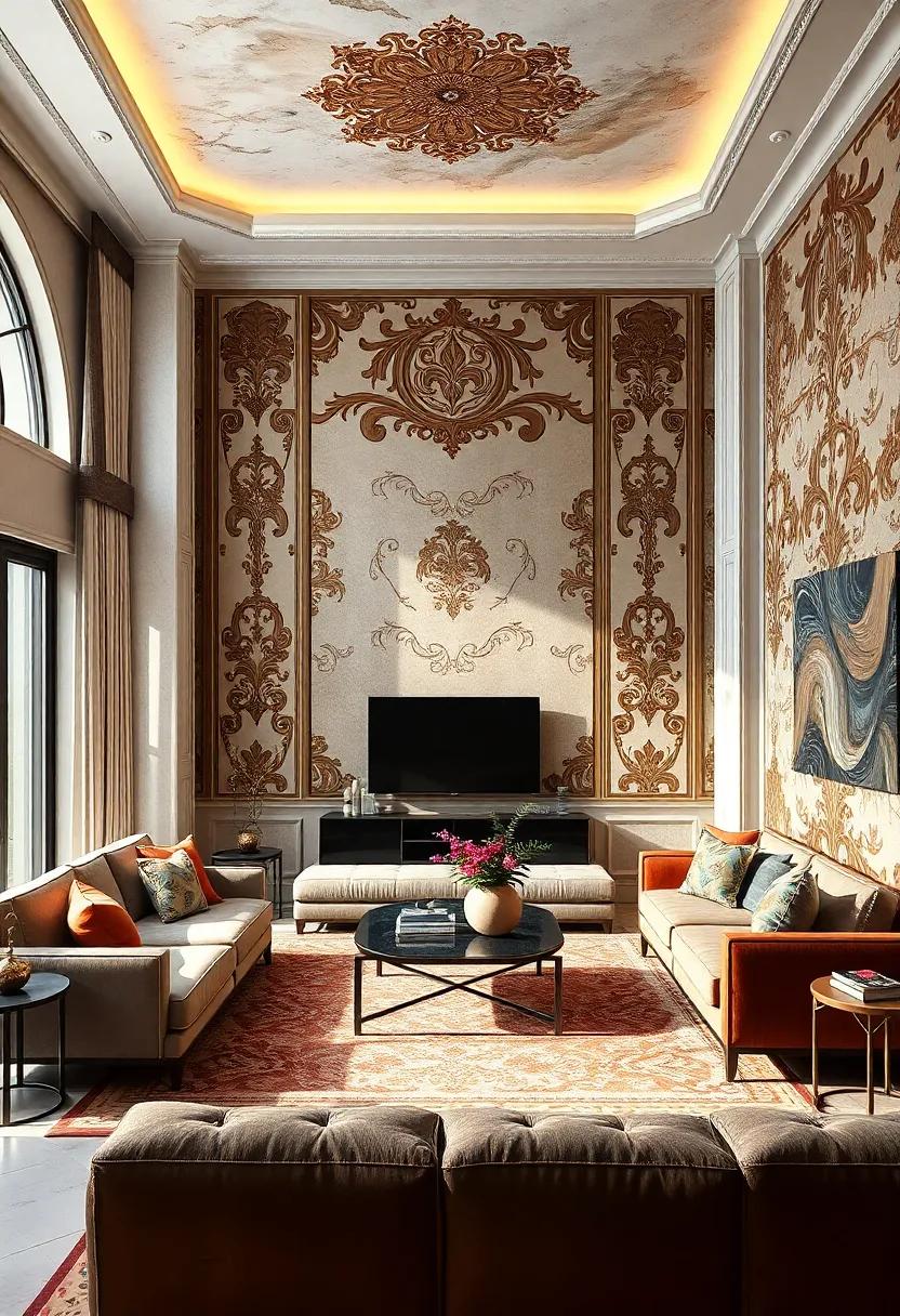 Old-world charm comes alive when paired with the right furnishings and decor. Imagine a bold damask wallpaper serving as the backdrop for ornate furniture pieces-perhaps a chaise lounge in velvet or a vintage coffee table with exquisite carving. To enhance the retro vibe, incorporate antique mirrors or gold-framed artwork that complements the wallpaper. You can create a visual symphony by mixing textures and patterns, ensuring that the overall look remains harmonious while exuding a sense of nostalgia. The fusion of these elements can redefine your living room, crafting a space that captures the essence of vintage chic.