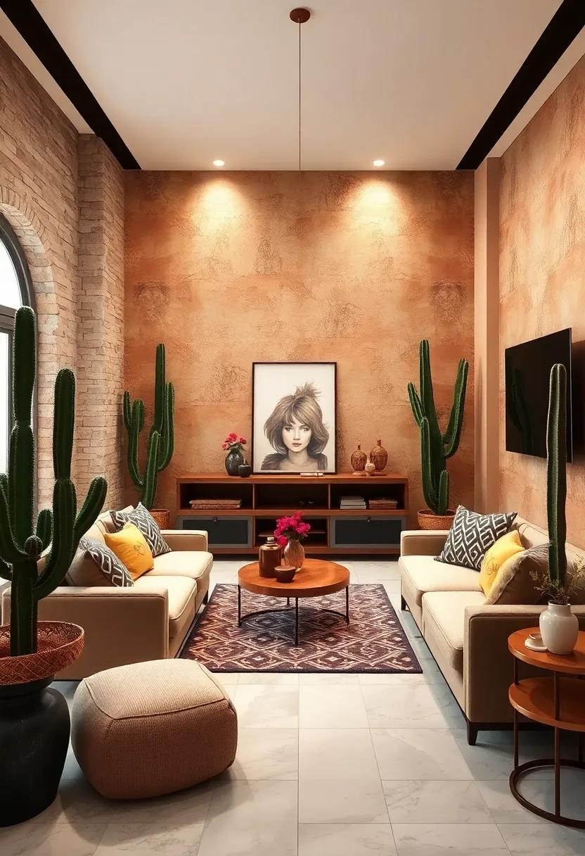 Desert Vibes: Capture the essence of a desert oasis with warm earth tones and patterned cacti, creating a cozy yet chic atmosphere