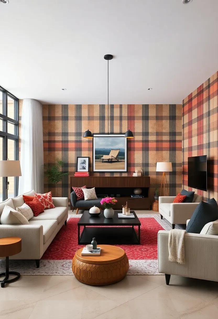 Bold Stripes: Opt for wide, contrasting stripes that draw the eye upward, making your space feel larger while adding a sense of modernity