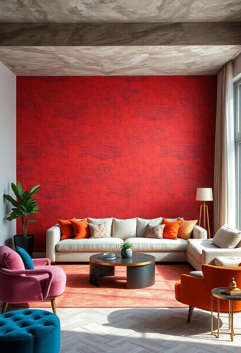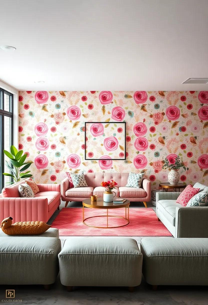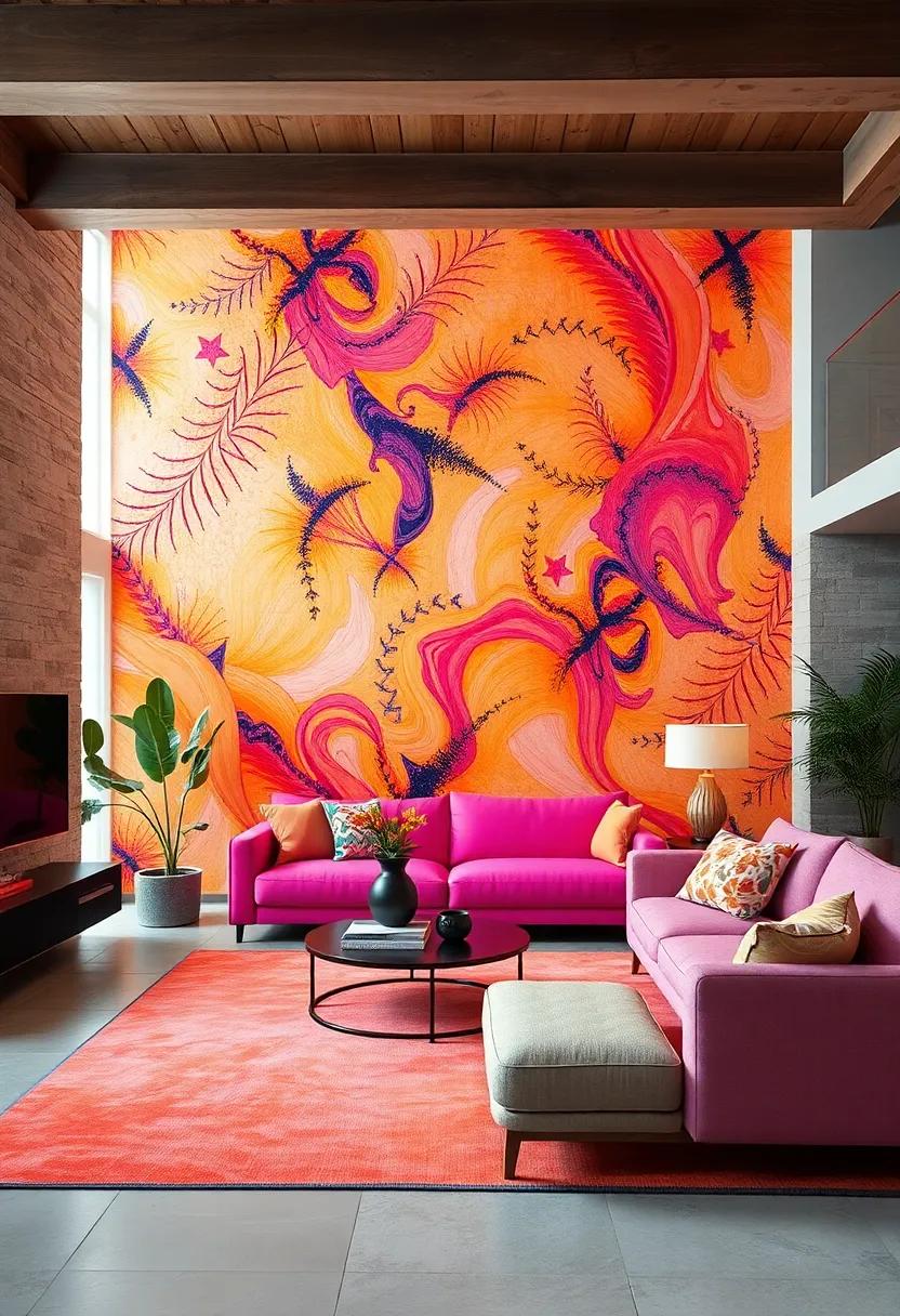 To fully embrace this lively aesthetic, focus on combining layers of color and texture. Consider incorporating wallpapers with gradient effects or oversized prints that evoke a sense of movement and depth. Pair your bold wallpapers with accent pieces like plush cushions or vibrant artwork that complement the dominant hues, creating a cohesive look that’s both energetic and inviting. Here are some ideas to elevate your vibrant living space: