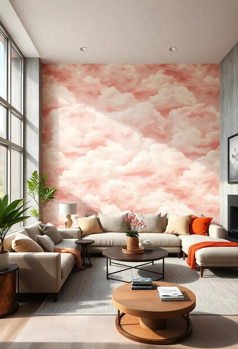 Whimsical Clouds: Create a dreamy ambiance with soft, pastel cloud patterns that invite a sense of calm and serenity into your living room