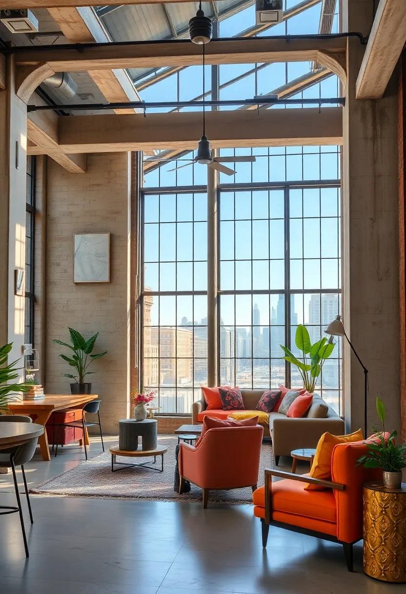 A converted warehouse loft featuring floor-to-ceiling windows that flood the space with light,showcasing a perfect blend of industrial and luxury