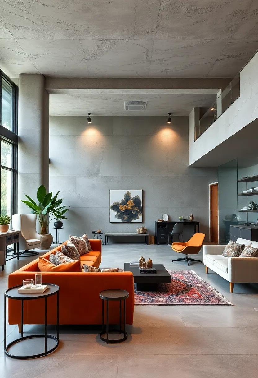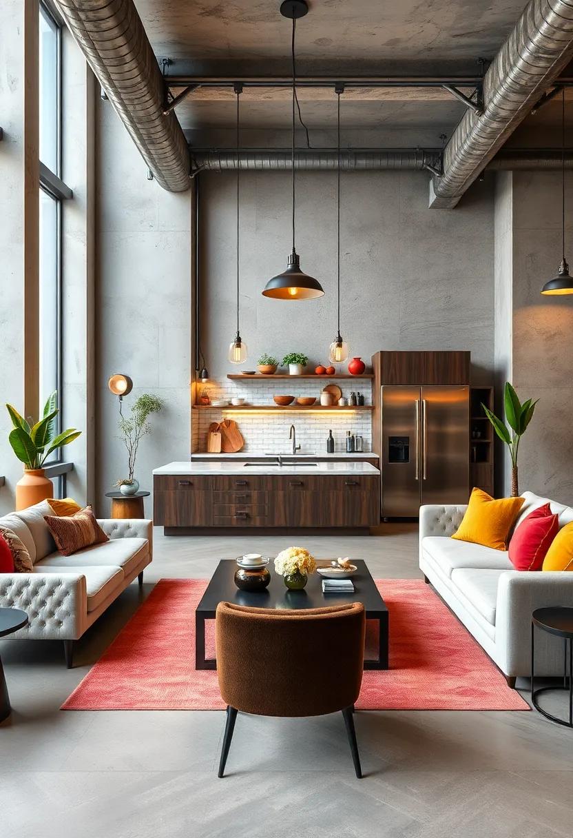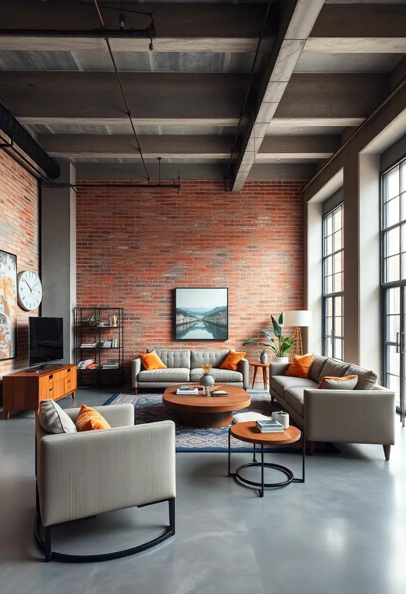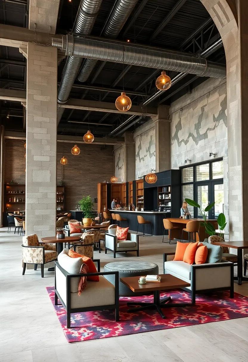 The design further incorporates textural contrast to enhance the overall appeal, featuring smooth leather accents and soft textiles against the backdrop of raw materials. Each piece is meticulously chosen to reflect a refined aesthetic, ensuring that every corner exudes charm and elegance. To elevate the experience, thoughtful additions such as artistic wall decor and indoor plants are strategically placed, providing a breath of freshness that enlivens the space. The interplay between comfort and sophistication in this lounge area leaves a lasting impression, drawing you into its embrace while celebrating the beauty of modern industrial design.