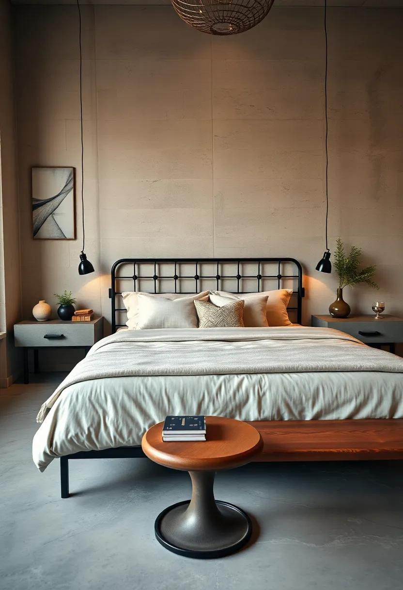 Beyond the bed, concrete nightstands can introduce a raw yet sophisticated edge to the room, showcasing the perfect marriage of rough and refined. Accentuating these surfaces with decorative objects—like brass or copper accents—can elevate the overall aesthetic while maintaining simplicity.to ensure the ambiance remains warm and inviting, ambient lighting options such as metal pendant lights or carefully placed wall sconces can dramatically change the mood. Layering different light sources not only illuminates the space beautifully but also highlights the industrial elements, reinforcing a cohesive design that stands out while feeling effortlessly serene.