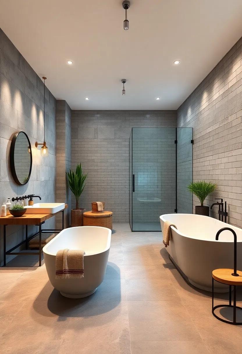 In this thoughtfully designed oasis, vintage-industrial fixtures play a crucial role in adding depth to contemporary style. Consider options like the exposed piping above the mirror or pendant lighting that showcases an industrial flair.each element is intentionally chosen to harmonize with the sleek vanity and modern accessories, creating a beautiful balance. The interplay between the rustic finishes and polished surfaces draws attention to the unique craftsmanship while emphasizing an atmosphere of relaxed elegance. This fusion of styles makes the bathroom not just a functional space, but a true reflection of artful living.