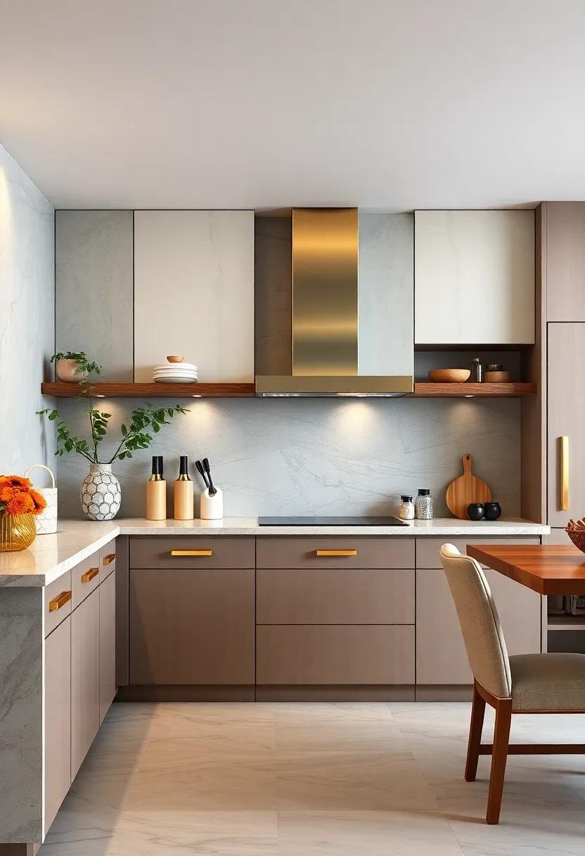 gilded fixtures: Upgrade your kitchen with gold hardware on cabinets‌ and drawers, enhancing an otherwise mundane space with an aura of luxury