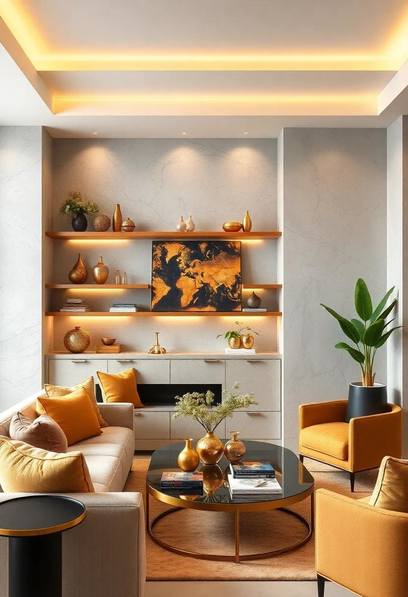 Reflective Beauty: ‌Decorate with gold-accented furniture pieces that play with reflections, creating a sense of space and an inviting atmosphere