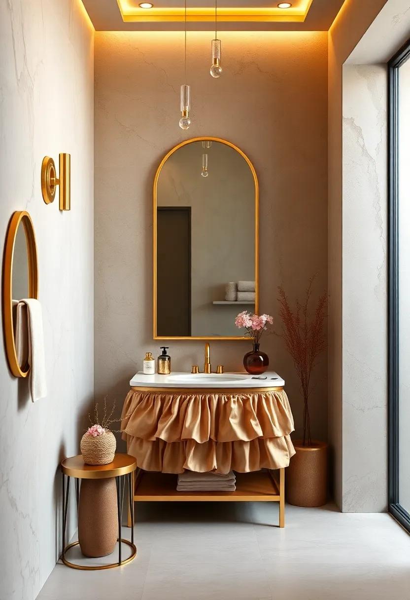 Ruffled Elegance: Incorporate a gold-accented vanity with⁣ ruffle details in a bathroom setting, creating a ⁣focal point that’s both‍ beautiful ​and functional