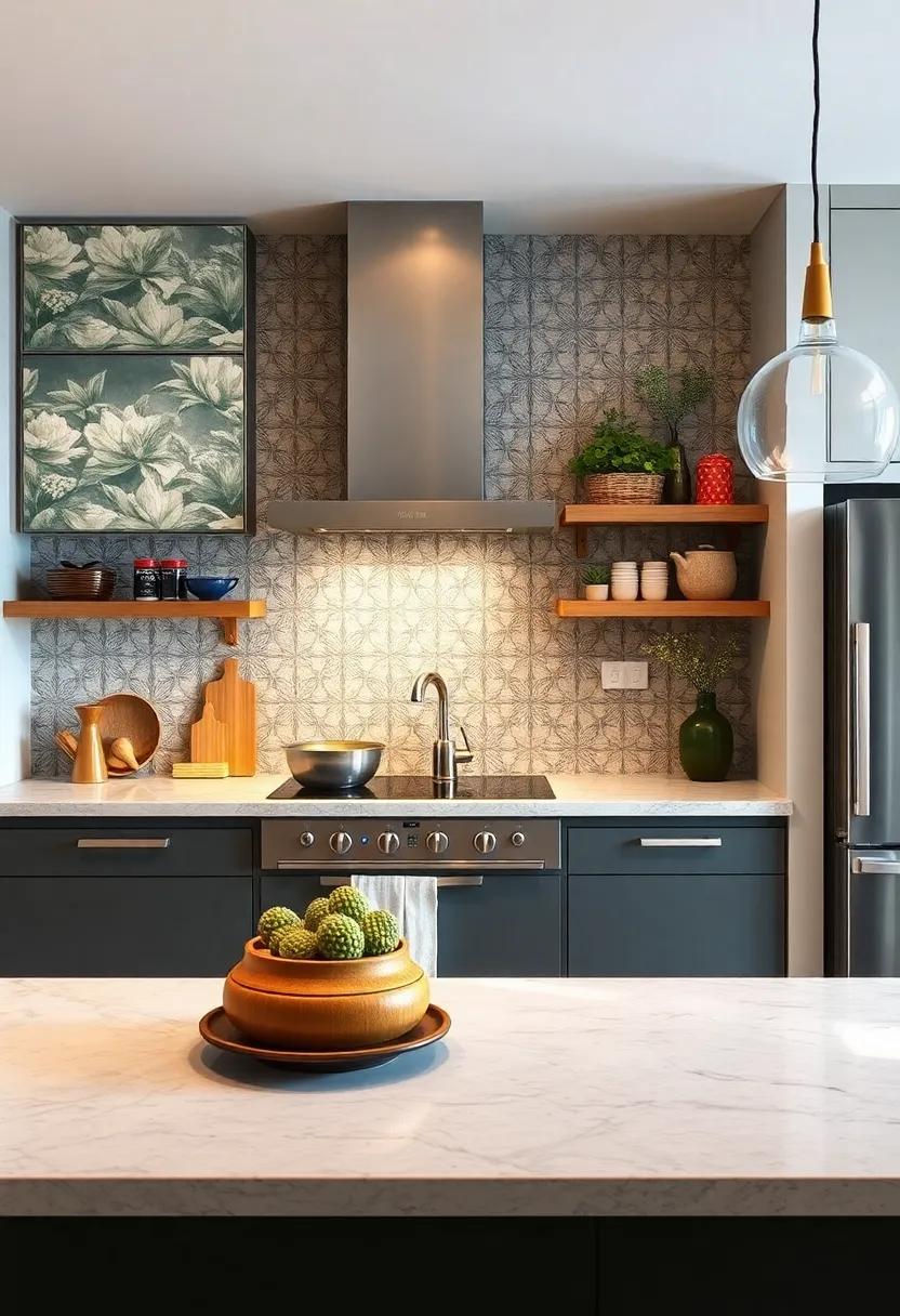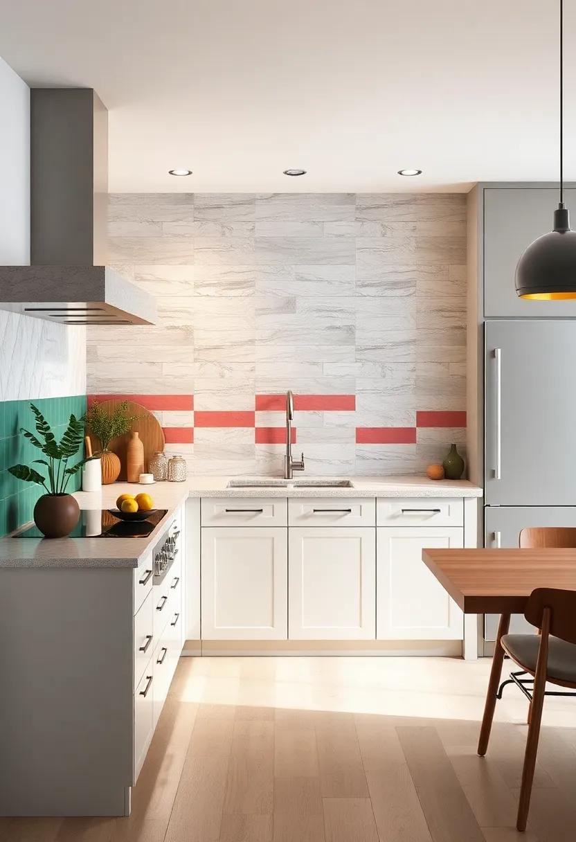 | Geometric Shapes | Bold reds, Blues | Glass tiles, metal accents |