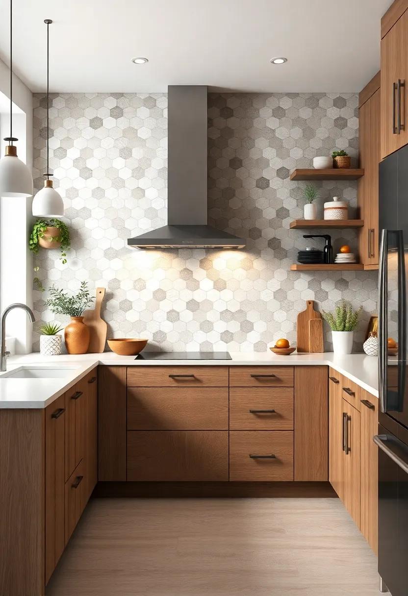 Hexagonal Tiles: The chic and modern aesthetic of hexagonal tiles can enhance your kitchen backsplash, providing a striking geometric element