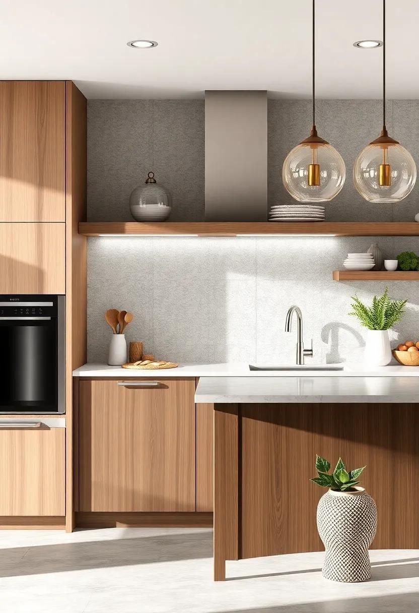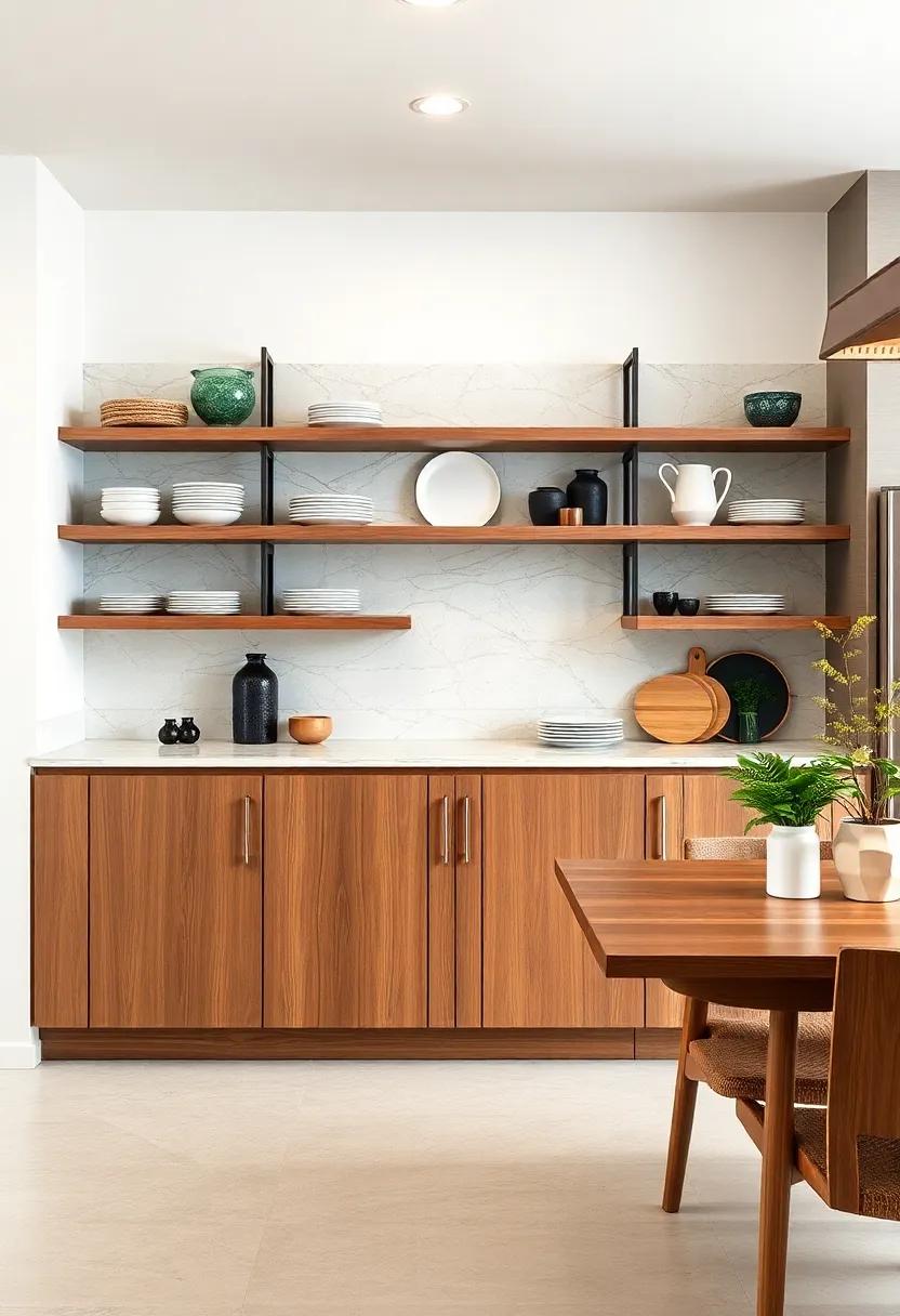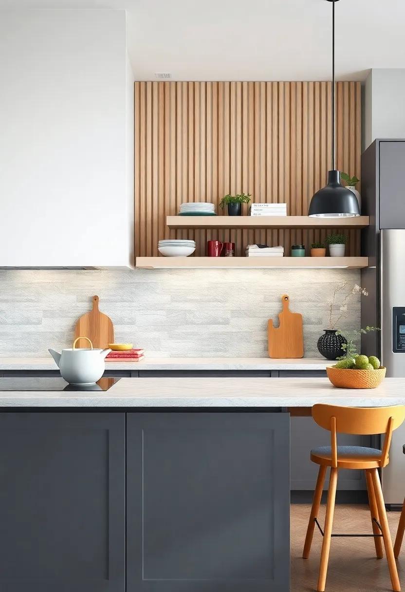 - Open Shelving: Use light wood slatted shelves to display your favorite dishware, merging art with utility.