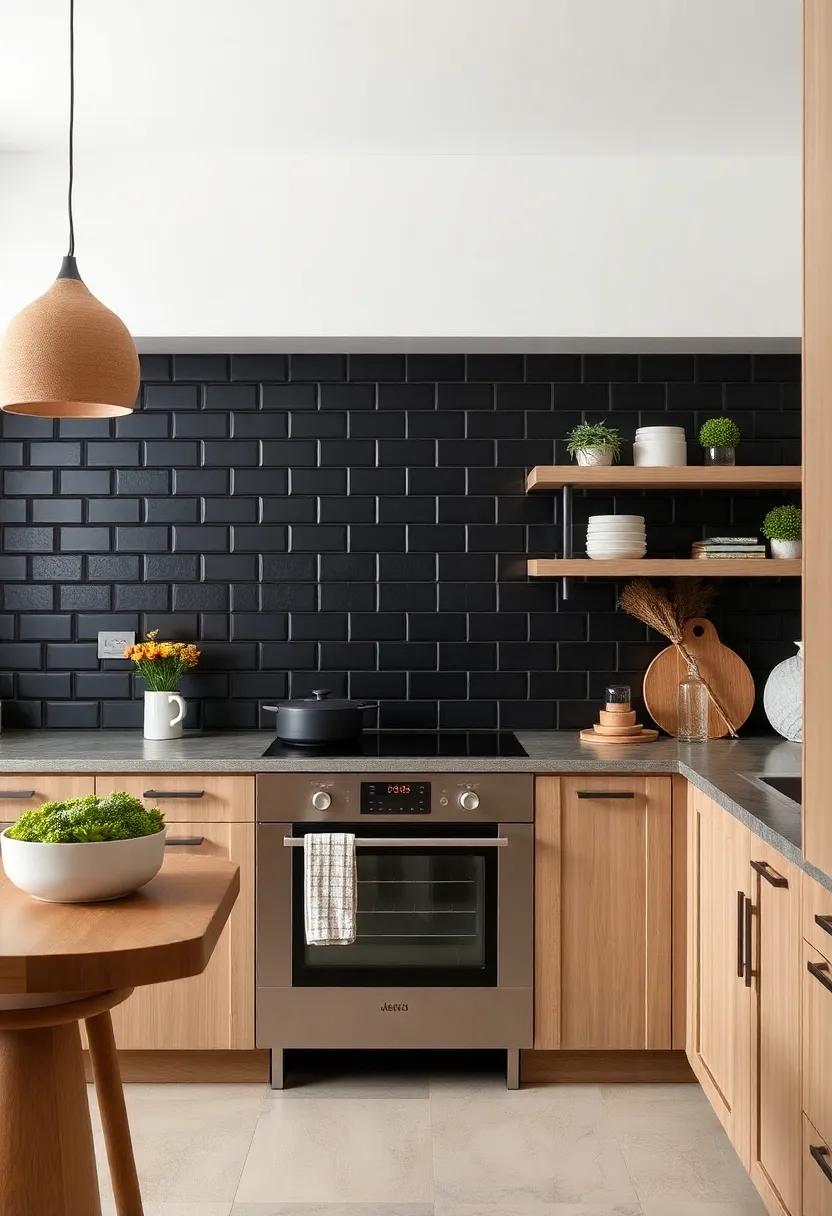 Matte Black Tiles: Create a striking contrast against lighter cabinetry with matte black tiles that offer a sleek and contemporary aesthetic