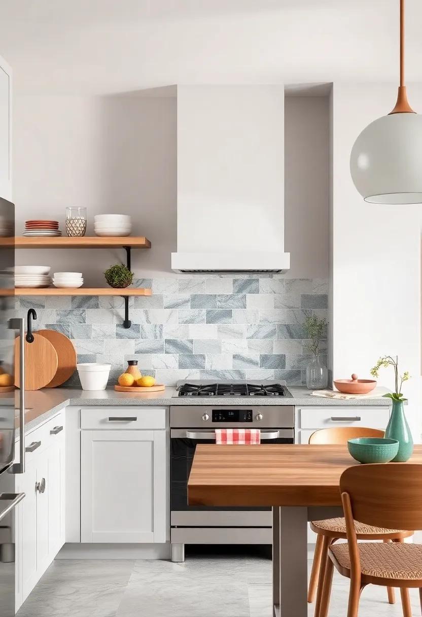 Open shelving in the kitchen not only provides easy access to your favorite dishware but also serves as a canvas for showcasing your personal aesthetic. Pairing this feature with a unique backsplash can elevate the overall design while ensuring functionality. Consider options like geometric tiles that add a modern touch, or perhaps a classic subway tile arrangement that resonates with Scandinavian minimalism. By selecting a backsplash that complements your displayed items, you create a cohesive look that invites warmth and style into your kitchen.