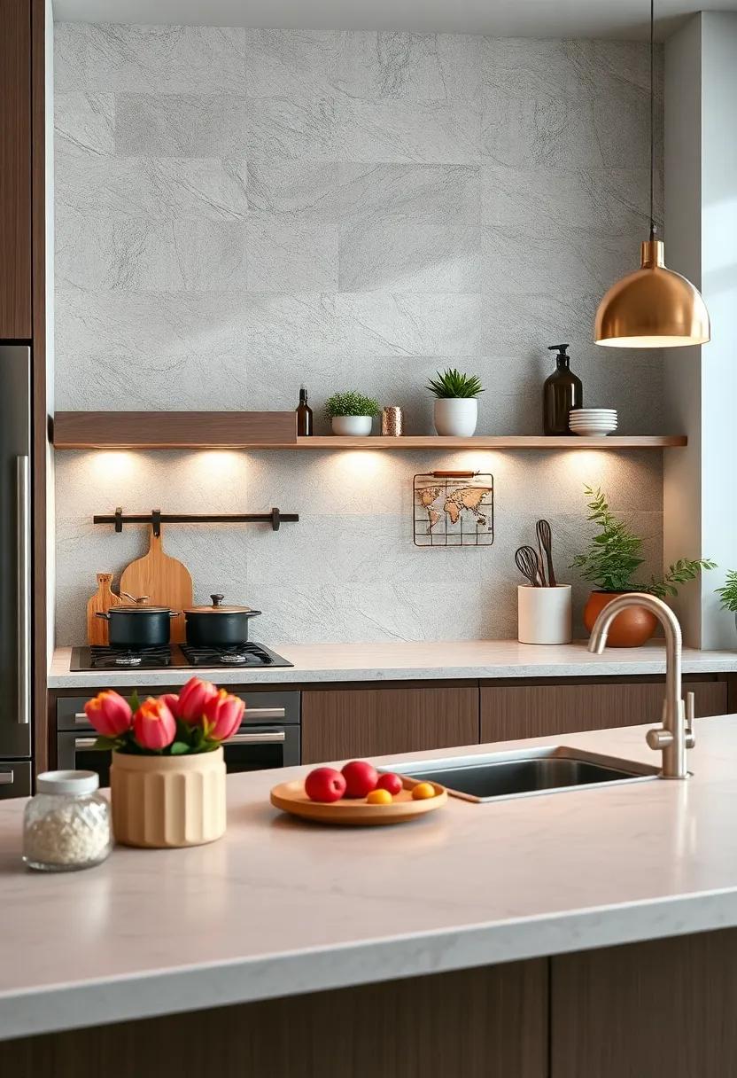 - Lighting: Pendant lights with a sleek finish can complement the tiles while adding warmth.