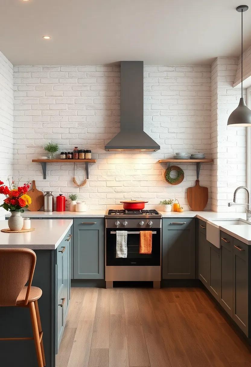 Brick Veneer Accent: Capture an urban feel with a brick veneer backsplash that brings a touch of rustic charm and historical appeal to your kitchen