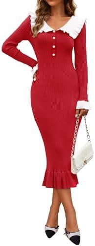 ZESICA Women’s Long Sleeve Sweater Dress 2025 ⁤Spring Lapel Collar Button Elegant Casual Midi Bodycon Dresses