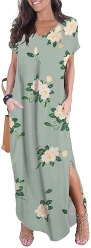 GRECERELLE Women’s Casual Loose Pocket Long Dress Short Sleeve Split Maxi Dresses