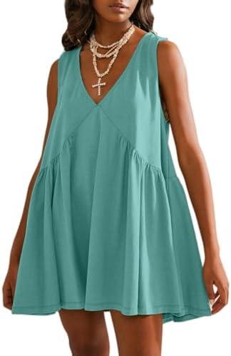 BerryGo ⁣Womens Summer Sleeveless Mini⁢ Dress Casual V Neck Beach Tank Babydoll Short Sundresses for Vacation Party‌ 2025