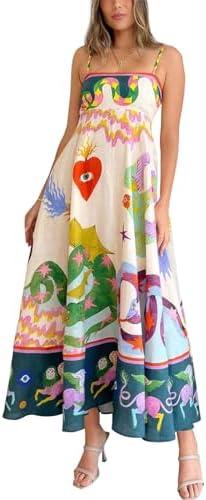 Colorful Boho Beach Sundress with Spaghetti⁣ Straps