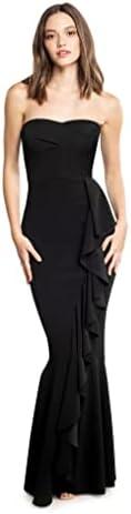 This exquisite gown features a strapless design complemented by an asymmetrical pleated bodice that beautifully enhances the silhouette. Crafted from stretch crepe, it offers a comfortable fit while maintaining an elegant flow. The cascade ruffle detail adds a touch of sophistication, making it an ideal choice for formal events, cocktail parties, or upscale gatherings. Its sleek form-fitting style will help you stand out in any crowd, ensuring that you leave a lasting impression, no matter the occasion.