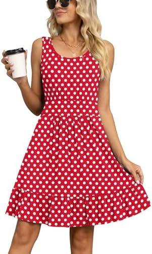 LILBETTER Women’s Summer Casual U Neck Sundresses Pleated Knee Length Sleeveless Tank Dress