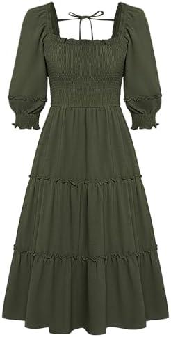 This elegant and casual midi dress is designed for various occasions, showcasing a flattering silhouette with its square neck and smocked high waist. The flowy and tiered ruffle design adds a touch of femininity, making it perfect for parties, weddings, and even church events. Constructed from lightweight materials, it promises comfort and ease of movement while keeping you stylish throughout the day. Pair it effortlessly with high heels, boots, or sandals to create a holiday look that’s on-trend.