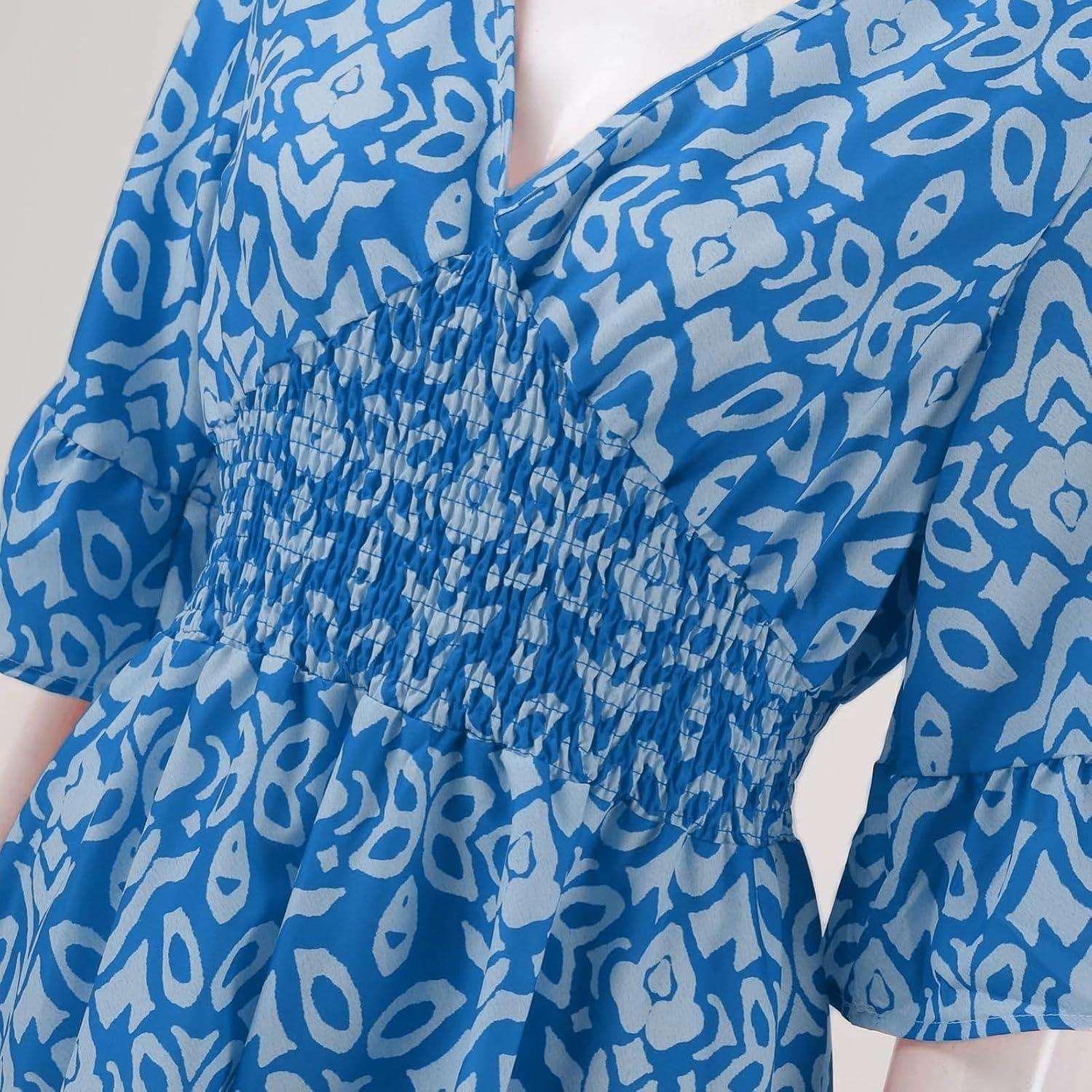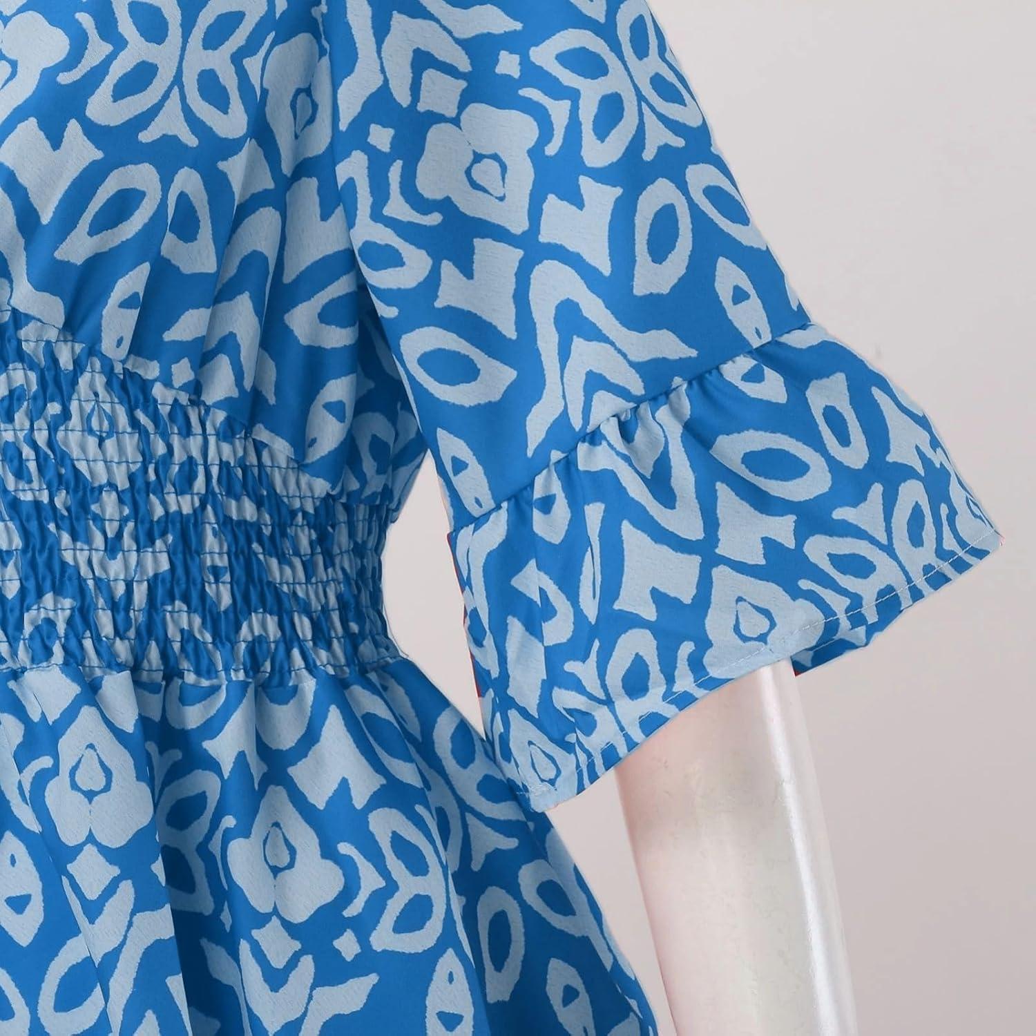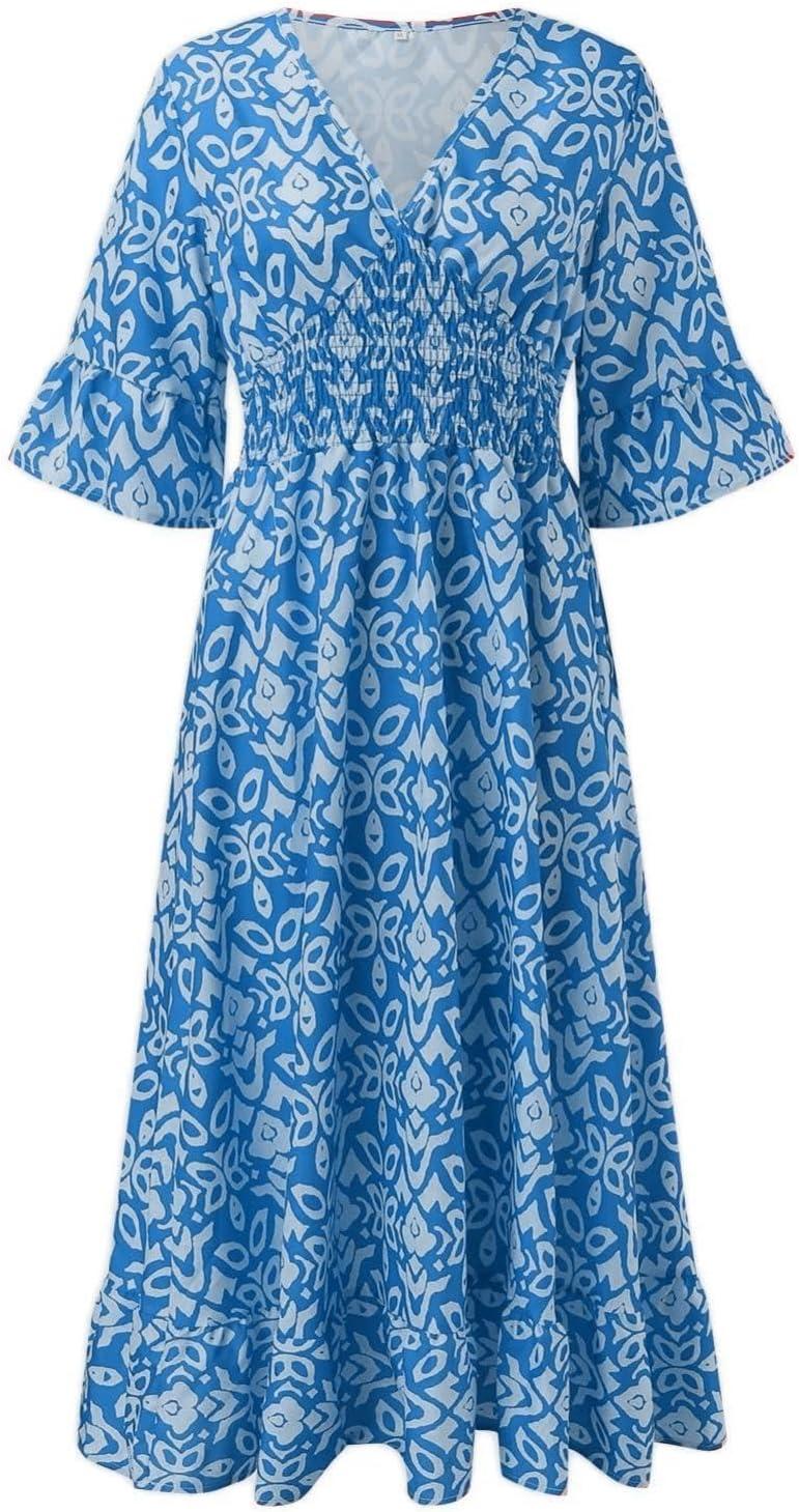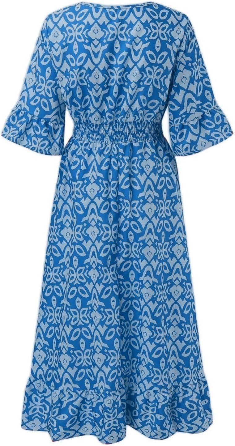 Taken enough times from the closet, the unnamed brand’s Boho Dress for Womens Plus Size Bohemian Midi Dresses Casual Loose V-Neck 3/4 Sleeve Floral Print Wrap Summer Dress slips into the rotation with little ceremony, a familiar shape in morning routines. In daily wear its fabric eases and the fit relaxes, registering comfort in the small gestures as it’s worn. Over time prints soften and seams round at the edges, and it becomes part of regular routines — a garment that is folded, smoothed, and reached for without fanfare. After a few wears it simply settles.