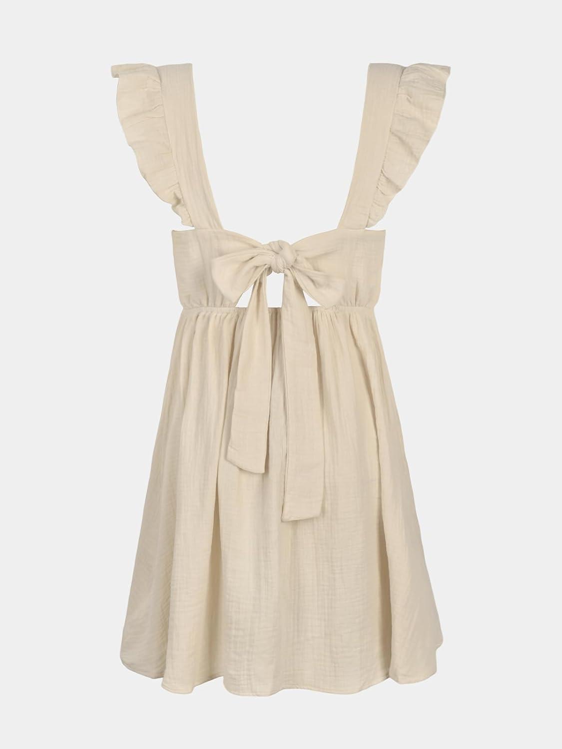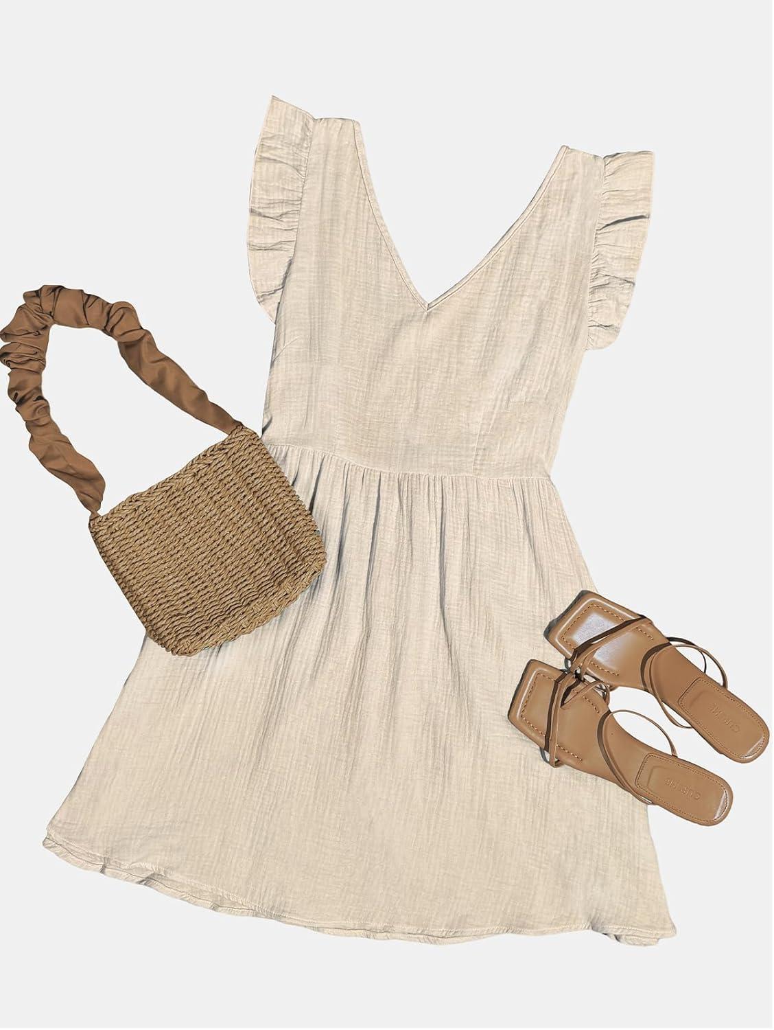 When we compare this dress with others currently available, a few features stand out.The 100% cotton fabric makes it noticeably softer and more breathable than many synthetic blends we’ve encountered, especially for a summer piece. The flutter sleeves combined with a self-tie back bow add a feminine charm that’s both playful and adjustable, enhancing the fit in a way that many fixed-back dresses cannot. While the dress is slightly sheer and lightweight-almost like a cover-up-this sets it apart from many heavier, less breathable mini dresses on the market. The versatile V-neckline works well across various styles, complementing the A-line silhouette for both casual outings and seaside vacations.