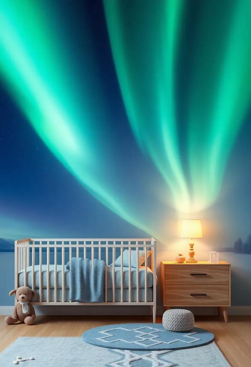 Imagine a nursery bathed in soft hues of green, blue, and violet, reminiscent of the ethereal light show of the Aurora Borealis. This adventurous color palette can be brought to life through strategic lighting choices. Think outside the box with fixtures that project swirling patterns across ceilings, simulating the movement of celestial light. Consider options like: